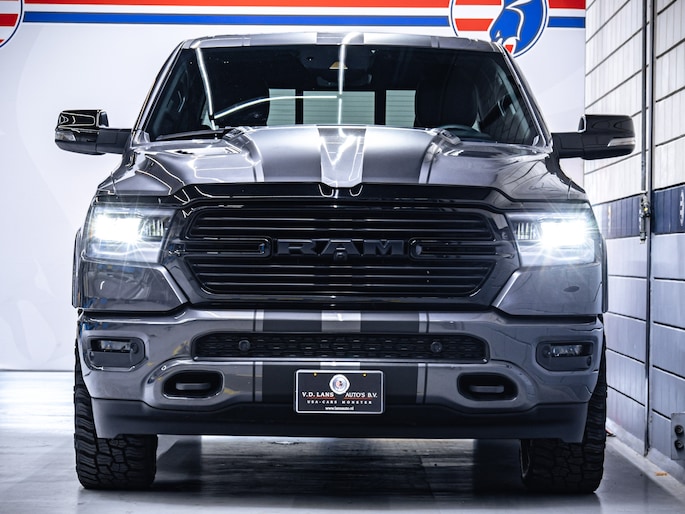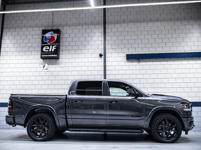 Dodge Ram 1500 Laramie Night Edition uit 2024, in topstaat. Uitgerust met een Prins LPG onderbouwinstallatie voor zuiniger rijden zonder verlies van vermogen.