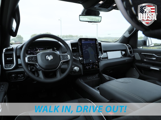 U rijdt gemakkelijk, comfortabel en zonder zorgen in de vernieuwde 2025 RAM 1500 Laramie. U kunt deze nieuwe auto nu direct verkrijgen, want hij is op voorraad. In deze auto vindt u de nieuwe twin-turbo inline-six benzinemotor en een automatische transmissie. Onze adviseurs vertellen u graag alles over deze nieuwe aandrijving! Het lederen interieur ademt luxe, en het zit uiteraard fantastisch. Zit u goed? De stoelen zijn eenvoudig instelbaar dankzij de elektrische bediening met geheugen. Het wijdse uitzicht door het glazen panorama dak maakt van elke rit een belevenis. Waarom zou je alleen voorin behaaglijk mogen zitten? Daarom is er óók een verwarmde achterbank. Bij de rijke uitrusting horen ook 22 inch lichtmetalen velgen, LED koplampen, elektrisch inklapbare buitenspiegels en treeplanken.