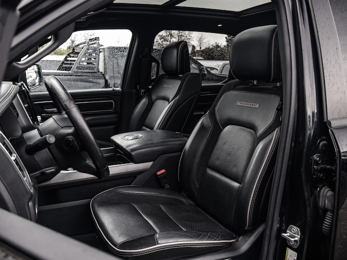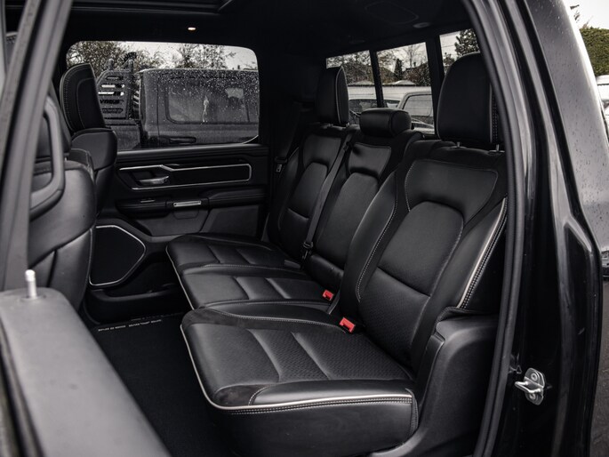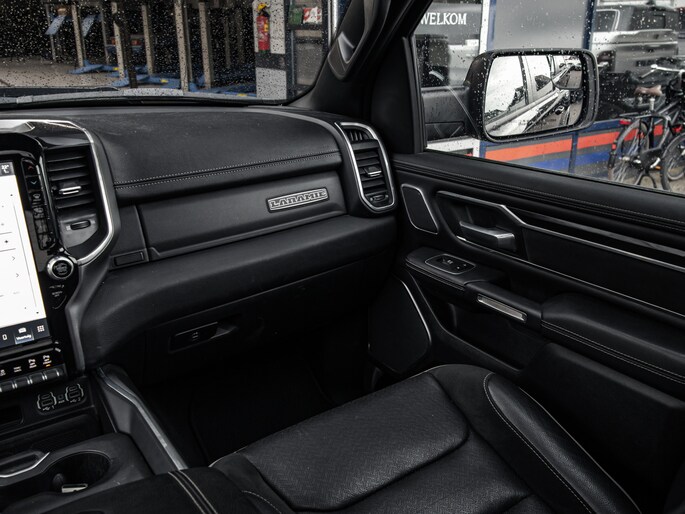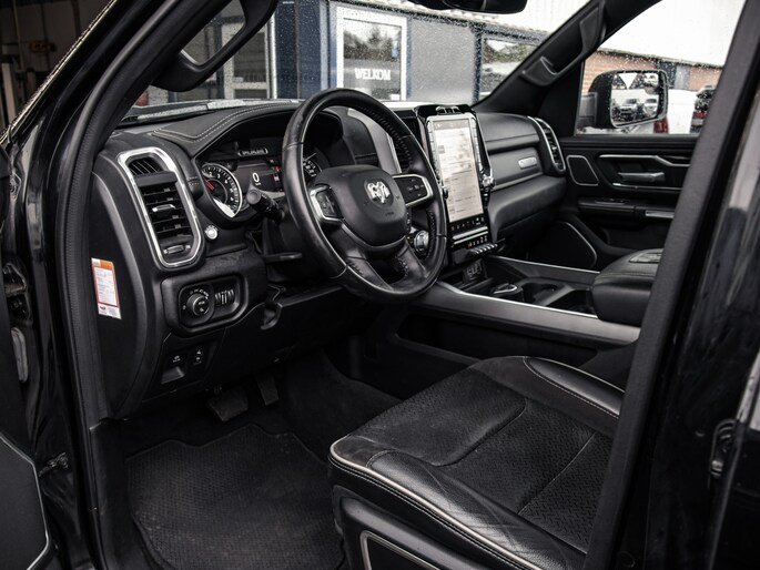 Nu binnen, deze 2022 Ram 1500 Laramie Night Edition met 12" Uconnect scherm, luchtvering, multifunctional tailgate.