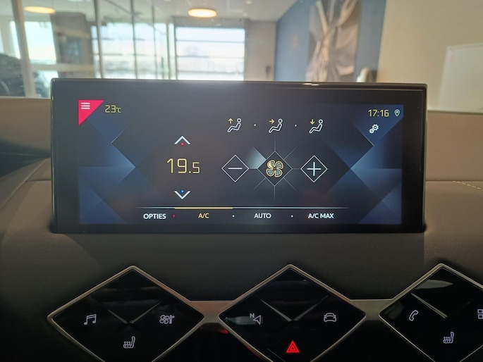 Pas de interface van uw cockpit moeiteloos aan. Het is mogelijk door het digitale dashboard in deze auto. Een handige optie is de achteruitrijcamera. Achteruitrijden, inparkeren en manoeuvreren gaat gemakkelijker dan ooit. Ook parkeersensoren voor en achter zijn uiteraard aanwezig. Een veiligheidsverhogende optie is de ingebouwde spraakbediening. Terwijl u uw ogen op de weg houdt, bedient u de auto met uw stem. Zoals u van zo'n jonge auto mag verwachten, zijn hier ook de geavanceerde remote services aanwezig. Simpelweg met een app op uw smartphone controleert u op afstand de status van de auto en bedient u diverse functies. Zorgeloos en geconcentreerd rijden? Het full map navigatiesysteem wijst de weg! U bent in deze DS ook voorzien van automatische airconditioning, DAB ontvangst, regensensor, cruise control, predictive keyless entry & start en een lederen stuur.