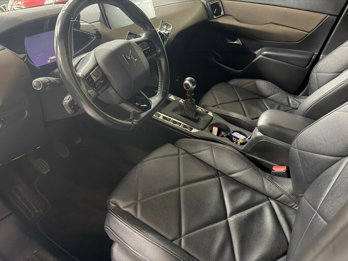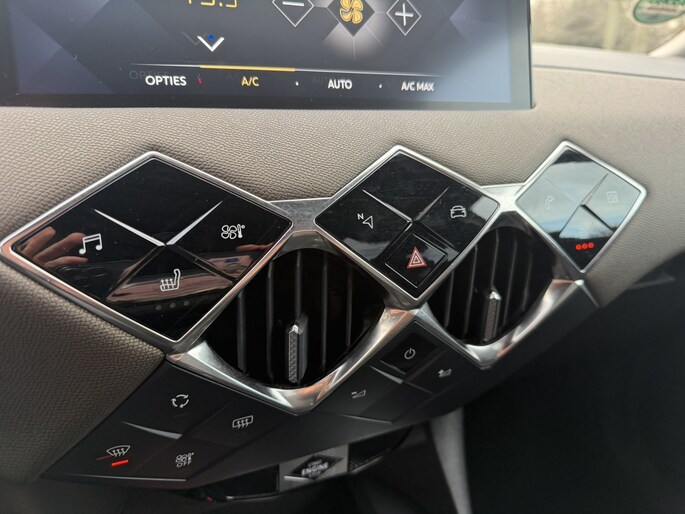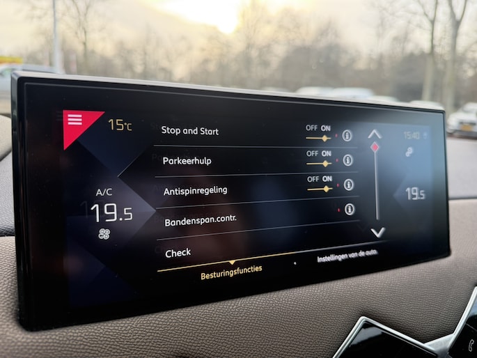 Met het digitale dashboard heeft u essentiële info in beeld. Altijd, overal. Bij de luxe van deze auto hoort ook automatische airconditioning. De parkeersensoren registreren alles. Ook dat ene paaltje dat net buiten uw gezichtsveld valt. Achter het stuur van deze DS bent u niet alleen. De auto kijkt als het ware met u mee tijdens de rit. De regensensor schakelt de ruitenwissers in als het nodig is en de automatisch inschakelbare verlichting doet de lichten voor u aan. Lekker koersen op een constante snelheid: daarvoor zorgt de cruise control. De uitrusting van deze auto is met lederen stuur, boordcomputer en lederen versnellingspook behoorlijk compleet.