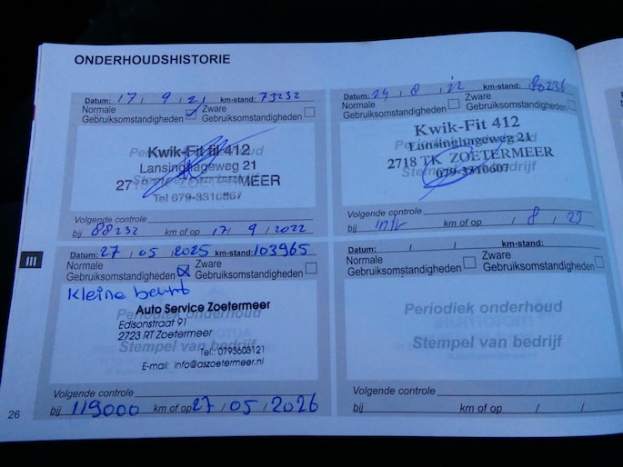 Kilometerstand gecontroleerd