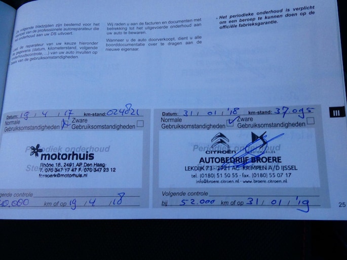 Onderhoudsboekjes: Aanwezig