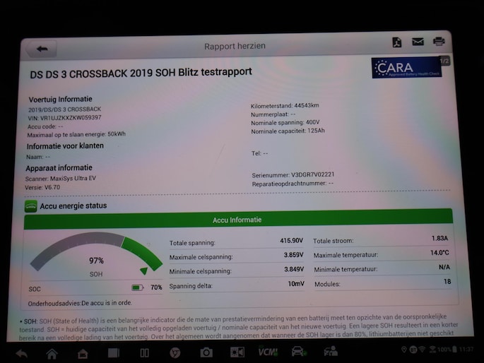 Accu laden: 11 kW, compleet vol in 5 uur