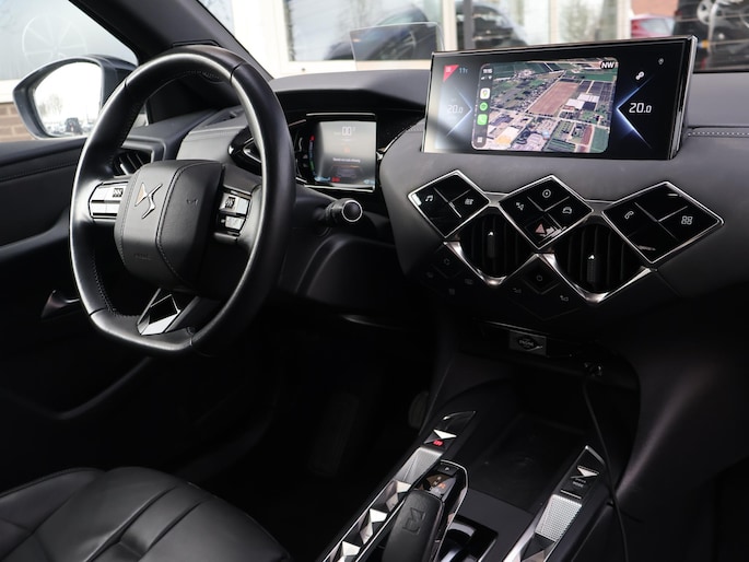 DS3 Crossback E-Tense So Shic 50 kWh uitvoering, Meest luxe uitvoering met vrijwel alle opties, 97 % SOH! Slechts 44.543 kilometer op de teller, Volledig luxe leder interieur met stoelverwarming, Digitale cockpit met navigatieweergave, Achteruitrijcamera, Adaptieve cruise control met regelbare afstand op de voorganger, DAB Digitale radio, Apple carplay/Android auto met verschillende opties waaronder: Spotify, Whatsapp en Flitsmeister, Lane-assist, Dodehoek detectie, 18 Inch lichtmetalen velgen, Draadloze telefoonlader, Multifunctioneel stuurwiel.