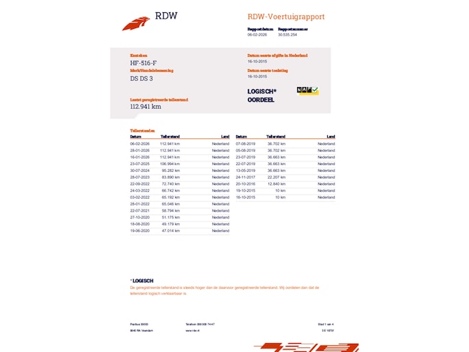 Kilometerstand gecontroleerd