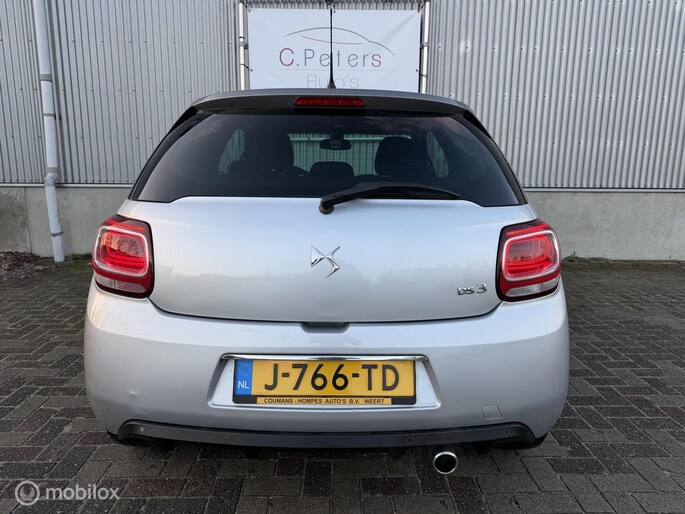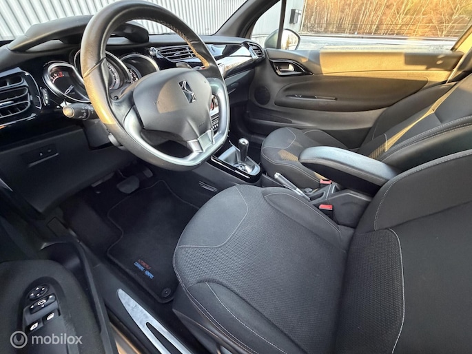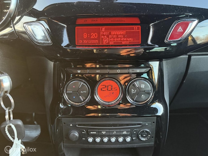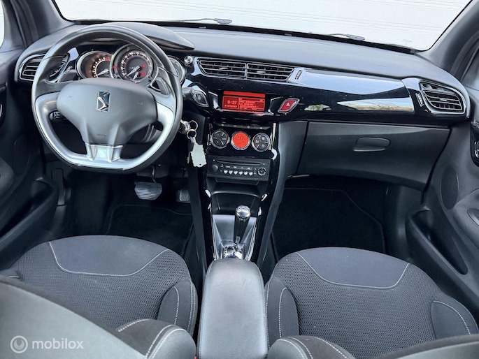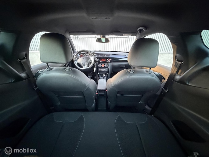 Een comfortabele en zeer luxe uitgeruste DS3 Automaat in een mooie speciale zilvergrijze metallic lakkleur donkergrijs metallic dak/spiegels in combinatie met zwarte hoogglans velgen. Een exclusief mooie verschijning. Voorzien van vele extra`s o.a, radio/cd/aux/usb / Sport interieur / Automatische Airco / Snelheidsafhankelijke Stuurbekrachtiging / LED Dagrijverlichting / LED achterlichten / Cruisecontrol / lichtsensor / Automatisch Dimmende binnenspiegel / Regensensor / Zwarte dakhemelbekleding / Elektrische bedienbare ramen / spiegels elektrische verstelbaar + verwarmbaar + automatisch inklapbaar / Mistlampen voor / Middenarmsteun / Parkeersensoren achter / Centrale vergrendeling op afstandbediening / 16”Velgen origineel met 4seizoensbanden / Volledig reservewiel / enz..