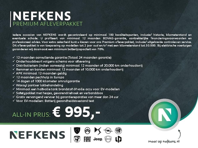 Dit afleverpakket bevat: BOVAG garantie (12 maanden) - Nefkens Premium Personenauto's (€ 995 meerprijs):