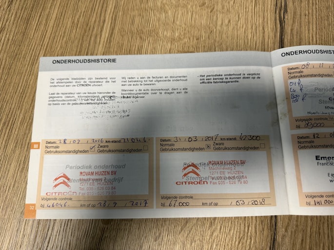 Onderhoudsboekjes: Aanwezig