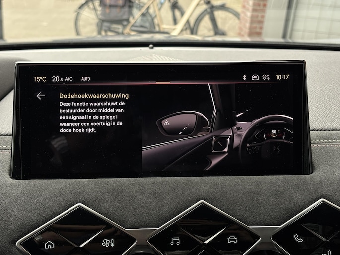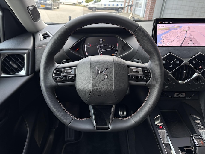 Het digitale dashboard is een perfecte bijrijder. Alles benodigde informatie is permanent zichtbaar of opvraagbaar. Zodra u naar de 'R' schakelt, gaat de achteruitrijcamera in werking en heeft u een perfect zicht op alles wat zich achter de auto afspeelt. Ook een camera aan de voorzijde én parkeersensoren voor en achter zijn aanwezig op deze auto. Adaptive cruise control is een comfortabele en veilige optie. Het systeem reguleert de snelheid en houdt automatisch afstand tot uw voorligger. Net als een smartphone of een slimme speaker kunt u deze auto bedienen met stemcommando's. Ingericht op Connected Services, voor een nog veiligere en comfortabelere rit. De uitrusting van deze DS is met premium audiosysteem, full map navigatiesysteem, automatische airconditioning, DAB ontvangst, regensensor en predictive keyless entry & start met startknop behoorlijk compleet.