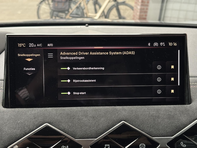 Als bestuurder van deze DS bent u nooit alleen. U wordt onderweg bijgestaan door technologische hulpmiddelen die samen met u de weg in de gaten houden. Als het nodig is, grijpen ze zelfs in, door te remmen of bij te sturen. Het Top Gun-gevoel komt van de head-up display, die alle dashboardinfo in het rijzicht projecteert. De actuele snelheidslimiet, een inhaalverbod en andere verkeersborden. De verkeersborddetectie ondersteunt u tijdens elke rit. Deze DS 3 is ook behulpzaam als het gaat om een rechte koers. Het Lane-keeping systeem signaleert en corrigeert als u onbedoeld de rijstrooklijnen dreigt te overschrijden. Met voorzieningen als dodehoekdetectie, hill hold functie, autonoom remsysteem en bandenspanningcontrolesysteem, bent u altijd veilig onderweg.