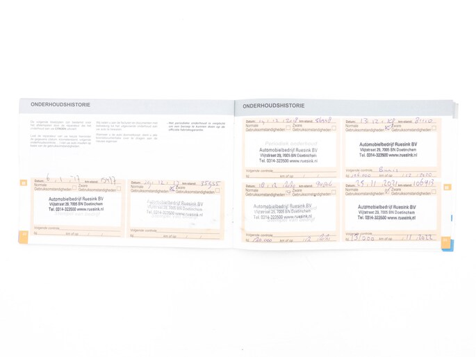 Onderhoudsboekjes: Aanwezig