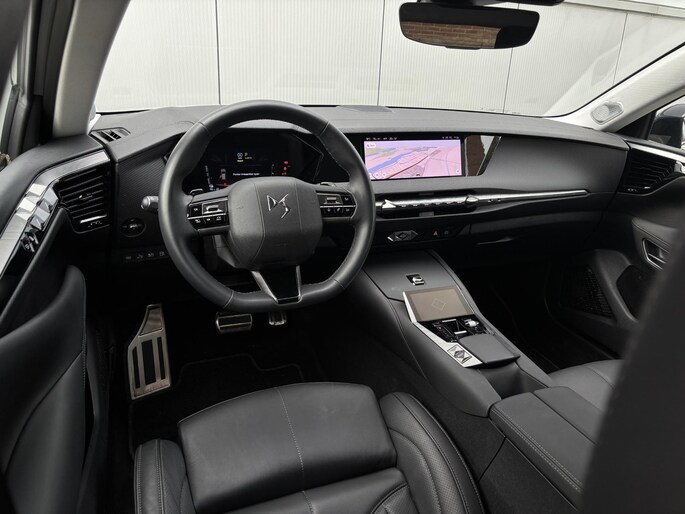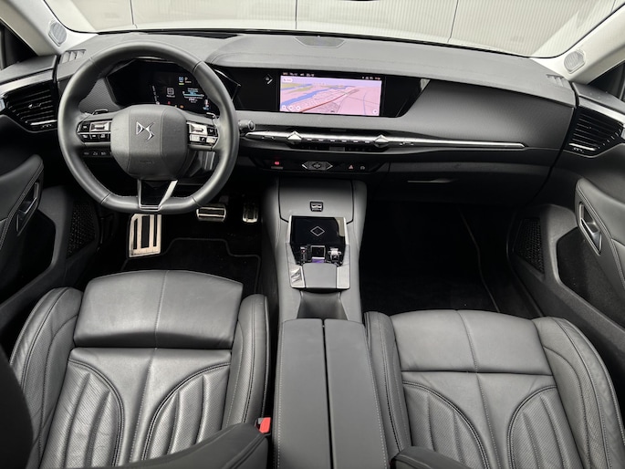 Het gecombineerde vermogen van een elektromotor plus een verbrandingsmotor geeft deze hybride DS4 zijn geweldige rijkwaliteiten. De zwart Nappa lederen bekleding geeft het interieur een hoogwaardige uitstraling. Deze DS 4 is van 21-11-2022 en heeft slechts 21.464km gereden! De auto legt bestuurder én bijrijder compleet in de watten. De verwarmbare (en verkoelbare!) voorstoelen zijn voorzien van massagefunctie. Een handige voorziening op deze auto is de elektrische achterklep die u op afstand kunt openen. Al is het nog zo fris, koude handen zijn verleden tijd door het verwarmd stuurwiel. Met matrix LED-verlichting rijdt u eigenlijk altijd met groot licht, dus maximaal zicht. Toch is verblinden er niet bij, want het systeem regelt de verlichting zo dat tegenliggers er geen last van hebben. Bij de uitrusting van deze DS horen onder meer 19 inch lichtmetalen velgen, geluidsisolerende ramen, een in ongelijke delen neerklapbare achterbank, predictive keyless entry & start, LED-achterlichten en verstelbare lendensteunen.