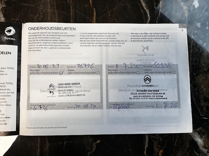 Altijd conform onderhoudsschema, alle beurten zijn volledig en tijdig uitgevoerd.