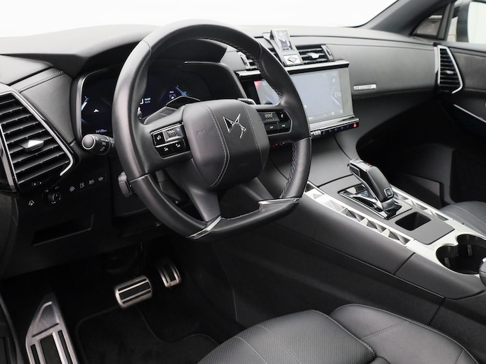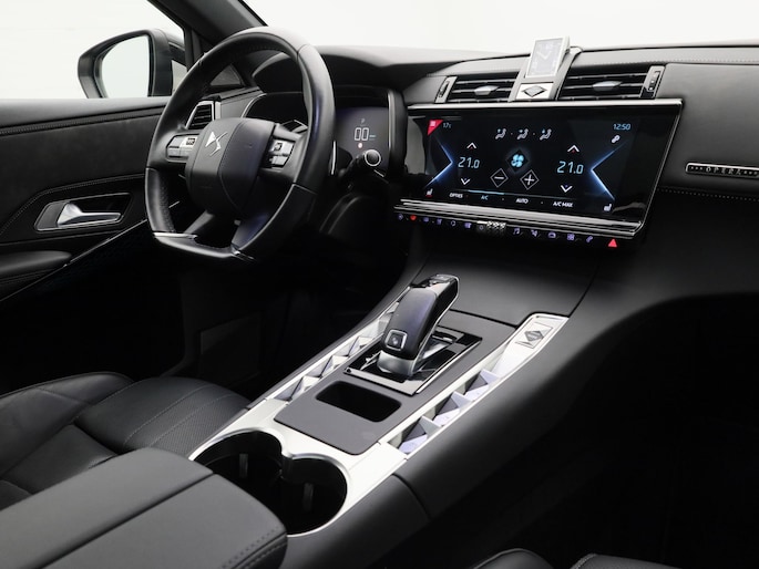 Ontdek de digitale mobiliteitswereld, met zijn dashboard dat alle noodzakelijke informatie projecteert om uw reis comfortabel en veilig te maken. Het gebruik van de 360 graden camera op deze auto vergemakkelijkt het parkeren aanzienlijk, vooral in krappe ruimtes. Adaptive cruise control houdt de ingestelde snelheid vast en houdt automatisch afstand tot uw voorligger. Een aanhanger of caravan kan ook mee, dankzij de elektrisch inklapbare trekhaak Voor wie hoge eisen stelt aan geluid en akoestiek, is deze auto voorzien van een high performance audiosysteem. De DS is standaard voorzien van: dashboard met spraakbediening, full map navigatiesysteem, electronic climate control, draadloos opladen, DAB ontvangst en regensensor.