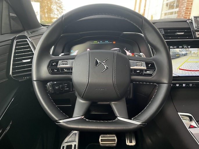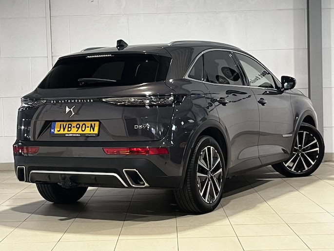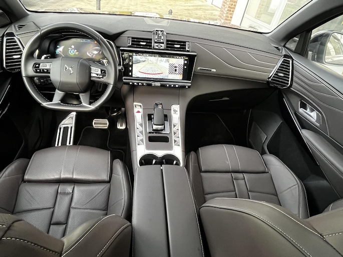 Styling en comfort van Franse auto's zijn legendarisch, nog altijd. Maar oh-la-la, de prestaties en rijkwaliteiten maken misschien nog wel meer indruk dan ooit! Op de teller van deze zeer bijzondere DS7 staat slechts 15.672 kilometer. Een solide hybride: zowel een elektromotor als een verbrandingsmotor voor maximaal rijplezier en minimale milieubelasting. Dit levert een gecombineerd vermogen op van maar liefst 300pk én 4-wielaandrijving (4x4). Zonder overdrijven een uitvoering met luxe en gemak: het elektrisch bediende glazen panoramadak, de elektrisch bedienbare achterklep en een prachtige Criollo Brown nappa lederen interieur. Doe maar luxe! Neem plaats in de verwarmbare voorstoelen en voel hoe de massagefunctie zorgt voor verfrissende doorbloeding op de lange ritten. Ook stoelventilatie is aanwezig. Verder voorzien van: 19 inch lichtmetalen velgen, Full LED koplampen, adaptief dempingsysteem (DS Active Scan Suspension), geluidsisolerende ramen, trailer assistent en een in ongelijke delen neerklapbare achterbank.