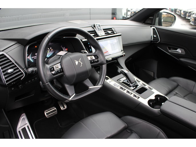 Stijlvol en veelzijdig, dat zijn misschien wel de belangrijkste kenmerken van de DS 7. Dit exemplaar is bovendien voorzien van verschillende systemen die het autorijden aangenamer en veiliger maken. Door de combinatie van brandstof- en elektromotor rijdt u met deze hybride DS 7 een stuk voordeliger. En het scheelt in uitstoot bovendien. We nemen u in gedachten even mee. Stop uw bagage moeiteloos achterin dankzij de elektrisch bediende achterklep, neem plaats achter het stuur en zie meteen het luxe lederen interieur. Even het elektrisch bediende glazen panorama dak open en rijden maar! Koude start? Niet met de verwarmbare voorstoelen! En allebei ook nog eens voorzien van massagefunctie tegen stramme rug en schouders. U wordt in deze auto ook getrakteerd op 21 inch lichtmetalen velgen, Full LED koplampen, adaptief dempingsysteem, geluidsisolerende ramen, trailer assistent en in delen neerklapbare achterbank. Met het digitale dashboard in deze auto kunt u de interface van uw cockpit personaliseren. Het inventieve 360 graden camerasysteem op deze auto heeft de functie om u assistentie te bieden in nauwe ruimtes en straten, waar het achteruit rijden vaak een uitdaging is. Met adaptive cruise control houdt deze auto automatisch afstand tot uw voorligger. Spraaksturing maakt het eenvoudiger en veiliger om deze auto onderweg te bedienen. In het zeldzame geval van een storing weet u nog eerder dan de monteur wat er mankeert. Uw smartphone met remote services geeft direct inzicht. Ook is de DS uitgerust met: premium audiosysteem, full map navigatiesysteem, automatische airconditioning, draadloos opladen, regensensor en keyless entry. Het rijden met deze DS wordt nog meer ontspannen dankzij de innovatieve technieken die onderweg over uw veiligheid waken. De camera van de verkeersborddetectie herkent verschillende soorten verkeersborden en toont deze op het dashboard. Keep your lane? Het Lane-keeping systeem zorgt er automatisch voor. Als een fiets of ander voertuig zich in de dode hoek bevindt, waarschuwt het actieve dodehoekdetectie. Dit helpt ernstige ongelukken voorkomen. U bent mede dankzij forward collision warning system, nachtzichtassistentie, hill hold functie, vermoeidheidsherkenning, autonoom remsysteem en bandenspanningcontrolesysteem steeds veilig onderweg. Om deze auto echt te ervaren, moet u beslist een proefrit maken. Mail ons nu of bel ons, dan maken we snel een afspraak.