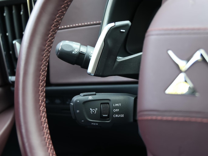 Deze DS biedt u niet alleen comfort en rijplezier, maar ook veiligheid. Actieve veiligheidssystemen houden voor u de weg in de gaten en reageren op onvoorziene situaties voordat u dat kunt. In het instrumentarium ziet u tijdens de rit ook de belangrijkste verkeersborden aangegeven, die de auto automatisch voor u leest. Het Lane-keeping systeem registreert permanent of u binnen de lijnen van de rijstrook blijft; dwaalt u onbedoeld af, dan waarschuwt het systeem en corrigeert de koers. De sensor van het forward collision warning-systeem registreert permanent de afstand tot voorliggers en grijpt in als een botsing dreigt. Bovenop deze veiligheidsfeatures heeft deze DS bovendien dodehoekdetectie, hill hold functie, vermoeidheidsherkenning en autonoom remsysteem.