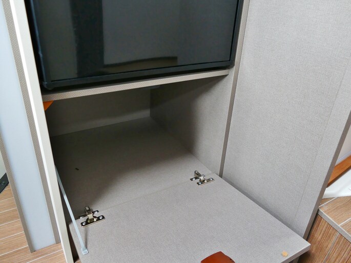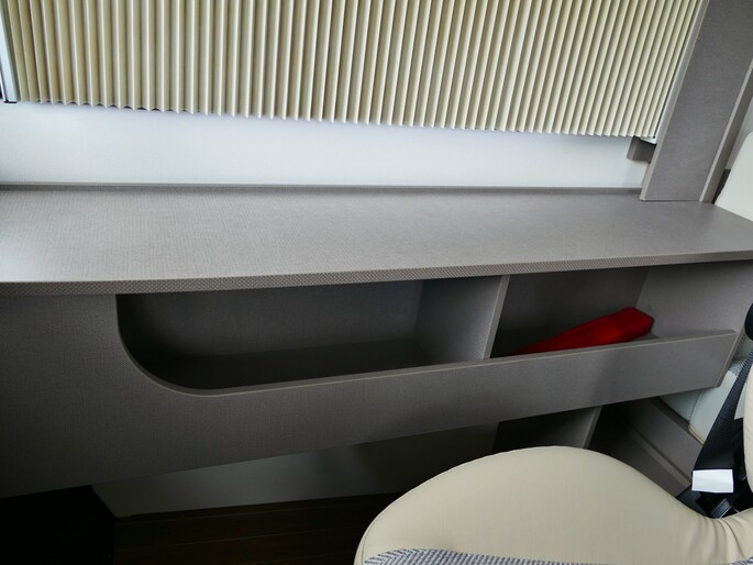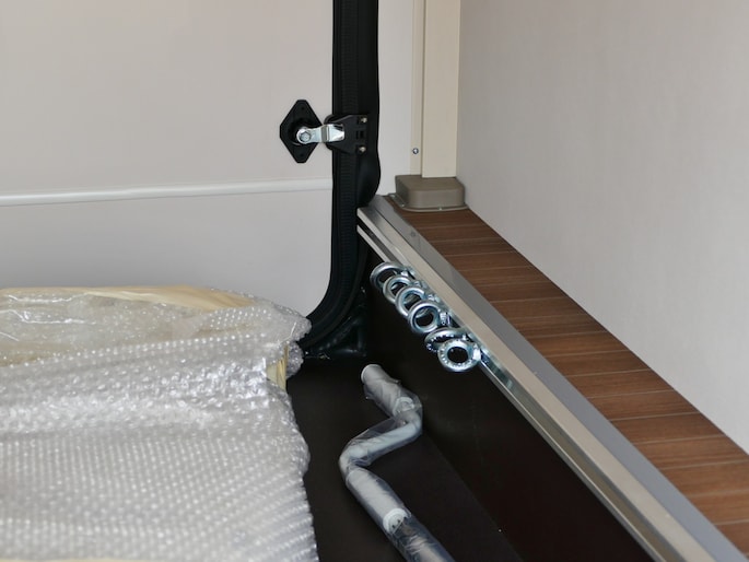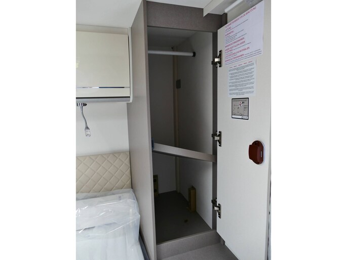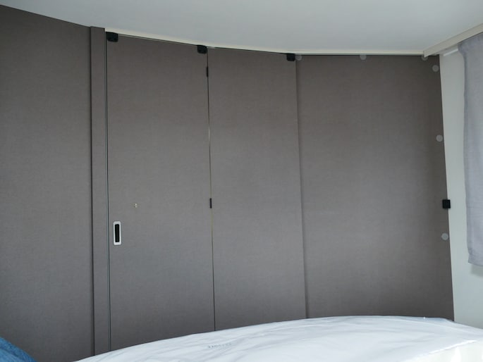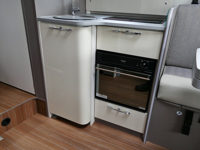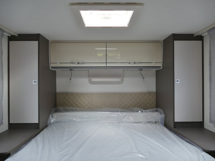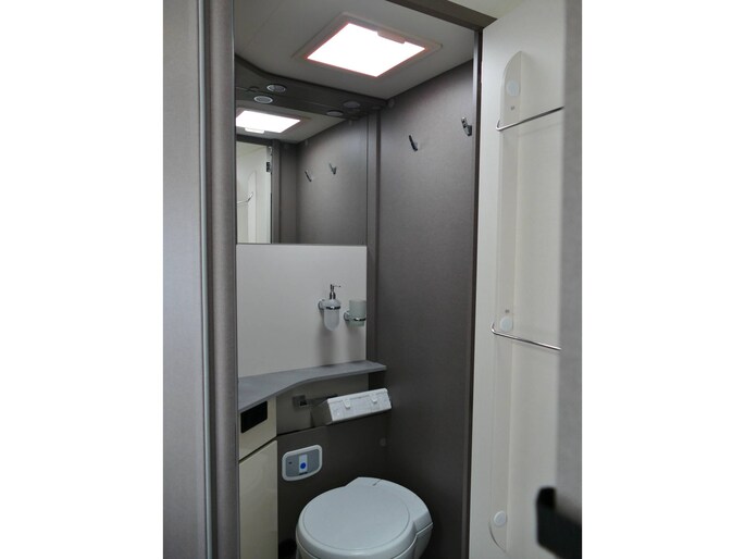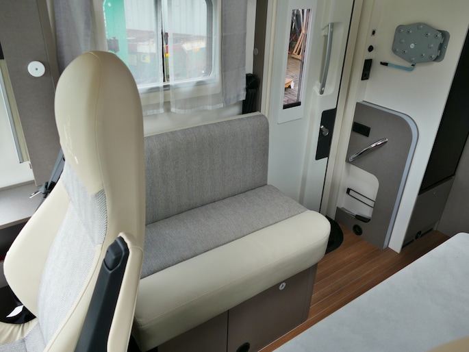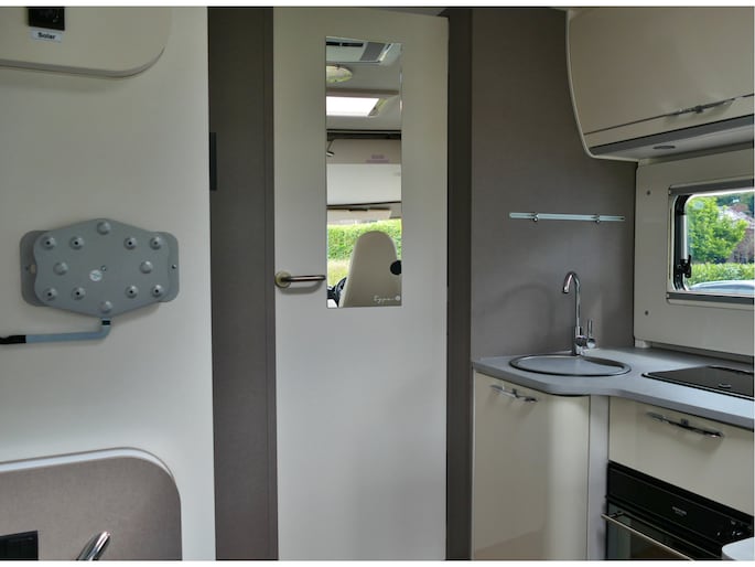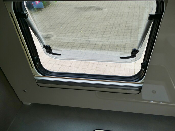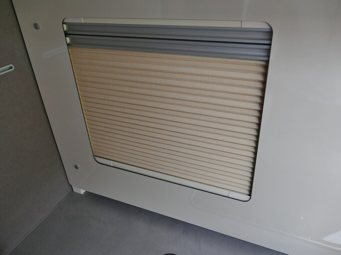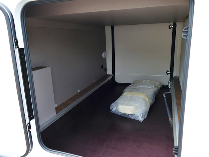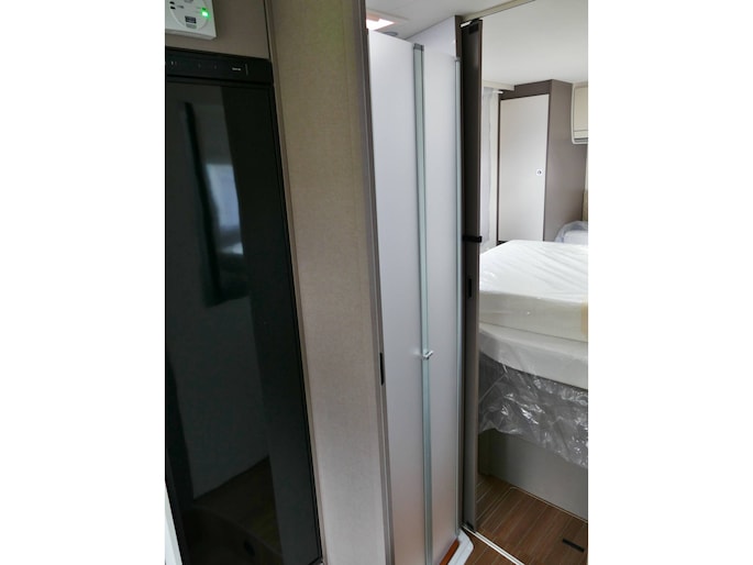 De achterste slaapplek is af te sluiten vanaf het toilet en de douche, maar het is ook mogelijk de slaapkamer en het toilet/douche samen gedeelte samen af te sluiten vanaf het woongedeelte.