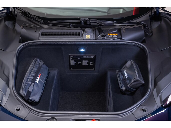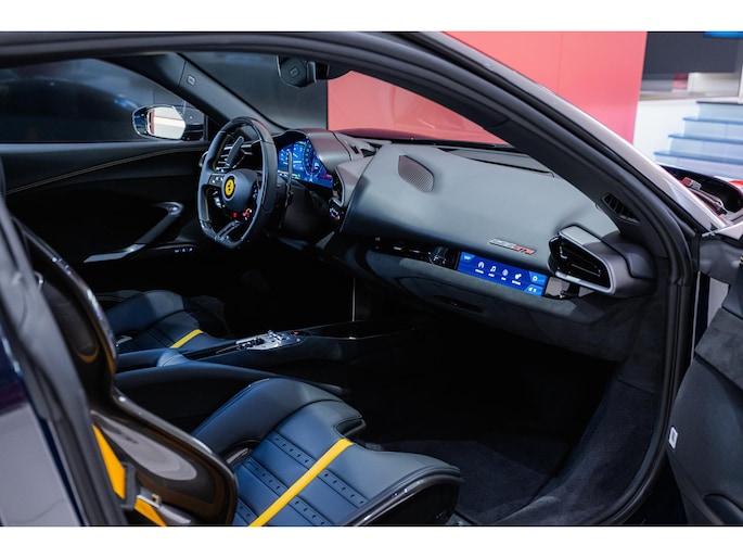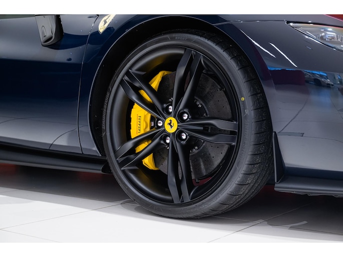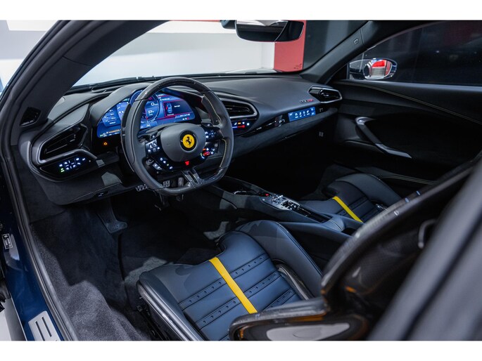 De auto is voorzien van een klassiek Blu Pozzi exterieur en Nero interieur dat is afgewerkt met enkele Giallo details. Daarnaast is de auto van een mooie lijst opties af fabriek voorzien: 20" velgen uitgevoerd in Nero Opaco, AFS - Adaptive Frontlight System + SBL, Apple Carplay, Automatische dimmende binnen- en buitenspiegels, Carbon Fibre Racing Seats "Daytona", Carbon Fibre stuurwiel inclusief LEDS, Dodehoek detector inclusief Cross Traffic Alert, Draadloze telefoonoplader, Ferrari logo geborduurd op hoofdsteun in Giallo, Lederen hemelbekleding Nero, Lederen inzetstukken interieur in Giallo, Liftsysteem aan voorzijde, Parkeersensoren voor en achter, Premium Hi-Fi systeem, Racing Seat liftsysteem, Remcalipers Giallo, Scuderia Ferrari Logo's, Stiksels in Giallo, Uitlaat Nero en Veiligheidsgordels in kleur Giallo.