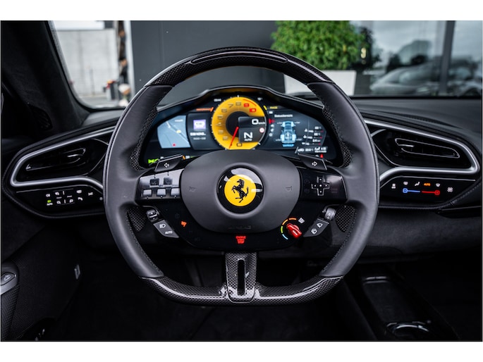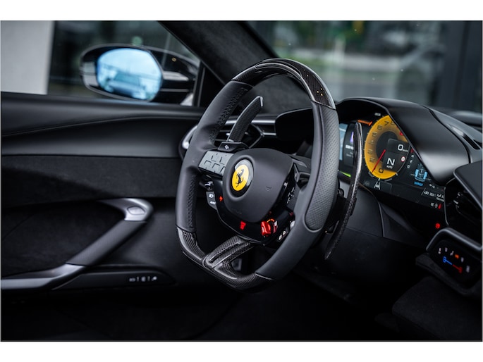 Onder de motorkap ligt de baanbrekende 3.0-liter V6 twin-turbo motor, ondersteund door een elektrische aandrijving die samen goed is voor 830 pk. De respons is onmiddellijk, de acceleratie verbluffend en het geluid – een unieke hoge toon die doet denken aan Ferrari’s iconische race-erfgoed – intens en meeslepend. Met het dak open beleef je de volledige soundtrack, rauw en zuiver, zoals een supercar bedoeld is.