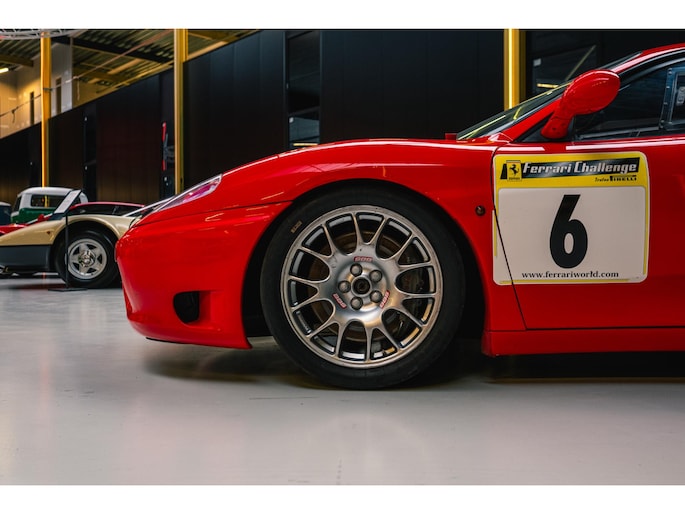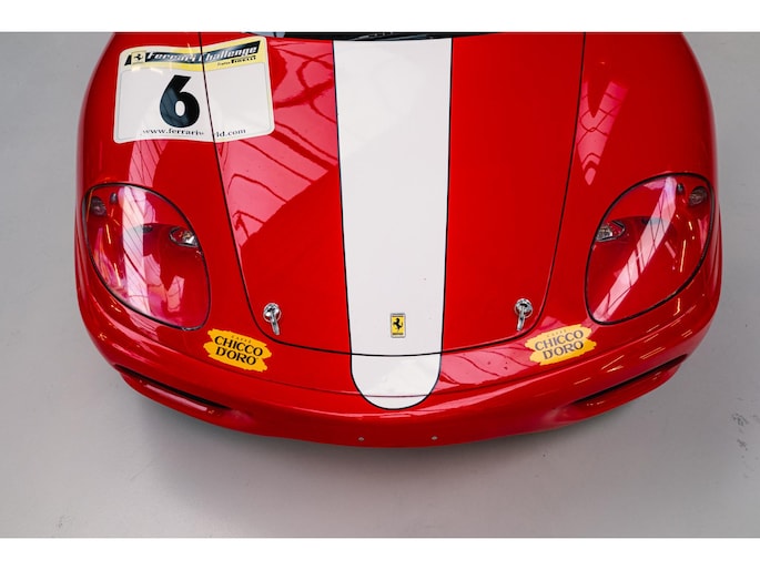 The Ferrari 360 Challenge is a race car based on the 360 Modena, developed specifically for Ferrari's single-make racing class, the Ferrari Challenge. The model was produced between 1999 and 2005 and was intended exclusively for track use. The car came with an F1 electro-hydraulic transmission and had a power output of around 400 hp, allowing it to accelerate from 0 to 100 km/h in 3.9 seconds .