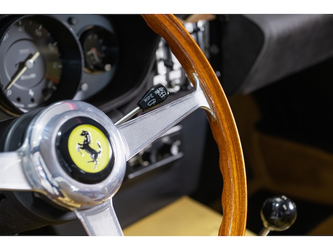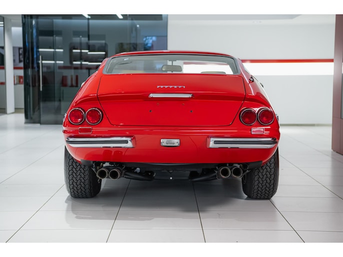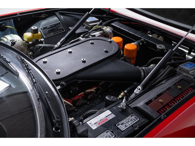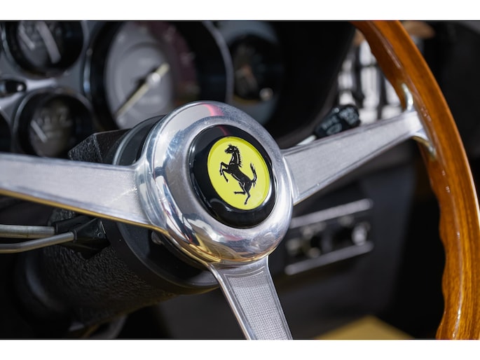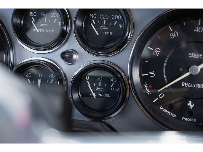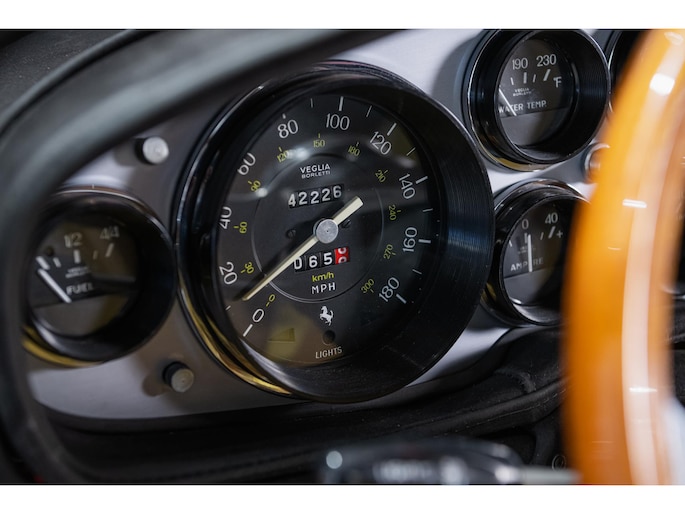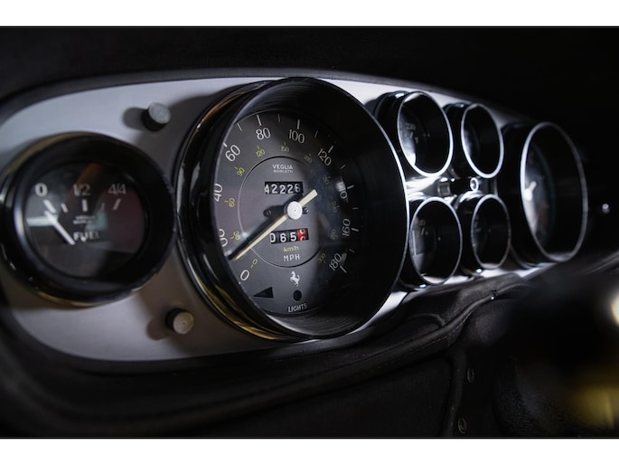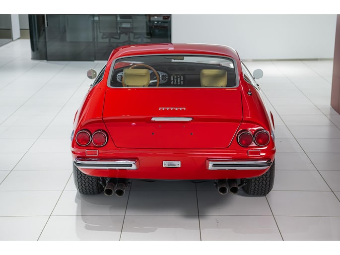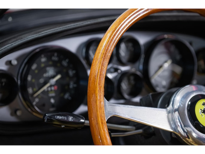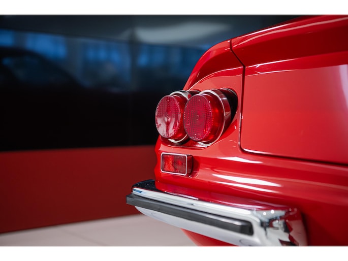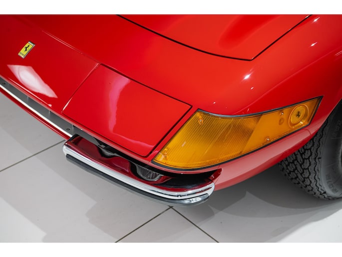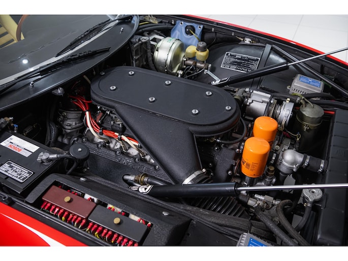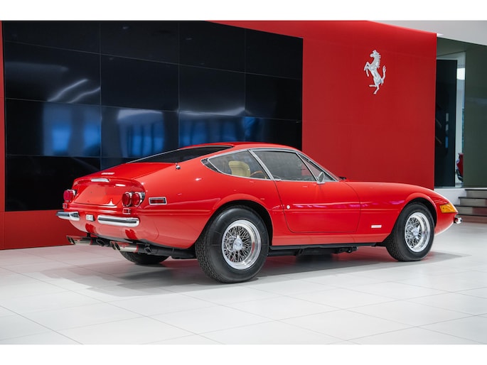 As this incredibly pristine 1972 example demonstrates, the 365 GTB/4 delivered its passengers in luxury and refinement worthy of the Ferrari name. One of 1,383 produced from 1968 through 1972, S/N 15443 is classically turned out in red over a tan leather interior featuring power windows, a wood-rimmed Nardi steering wheel, Veglia instrumentation and a gated shifter. The car invites the closest scrutiny, displaying concours-quality fit, finish and detailing. Completed with Ansa exhaust and Michelin XWX radials on chromed Borrani knock-off wire wheels, it shows just 42,175 miles and comes with books, a warranty card and the ever-important tool roll. Classiche Certication inspection completed in 2025.