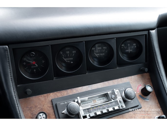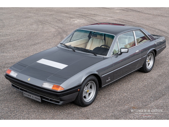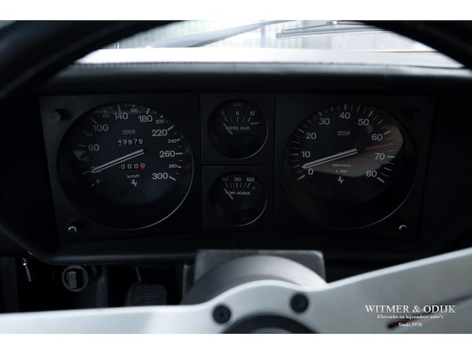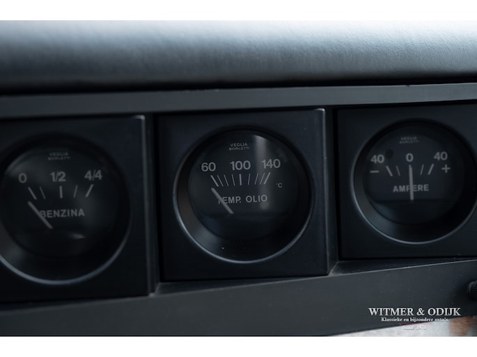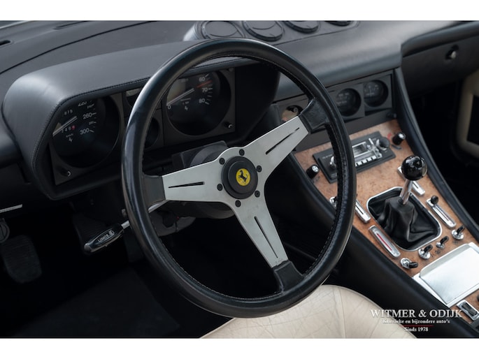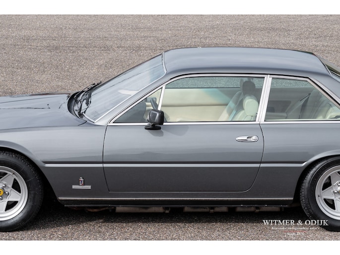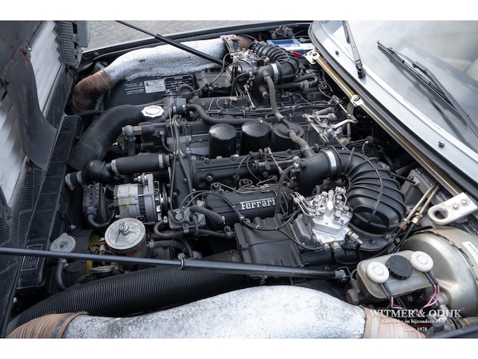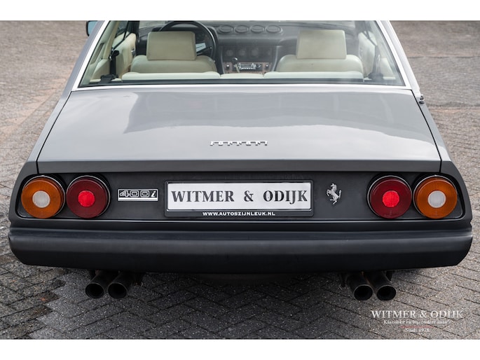 In 1976 was de 400 de eerste Ferrari die werd uitgevoerd met een automatische versnellingsbak. Helaas werd hiervoor een 3 traps automaat van General Motors gebruikt die de auto haar sportieve rijbeleving grotendeels ontnam. Omdat het de eerste als zodanig uitgevoerde Ferrari was werden er hoofdzakelijk automaten verkocht. Inmiddels weten de liefhebbers dat de handbak de leukste 'rijders' variant is. Van die versie echter werden slechts 422 exemplaren gebouwd. In deze uitvoering een zeer zeldzame auto dus. Het prachtige PininFarina ontwerp is door de jaren heen omgeven door een steeds groter wordende groep bewonderaars. Wellicht ook omdat niet alleen tal van wereldsterren als bijvoorbeeld Elton John en Pete Townshend er in rondreden, het was één van Enzo's favoriete auto's waar hij zich mee verplaatste. Inmiddels is de 400 met handbak een rijzende ster in het klassieke V12 gamma van Ferrari. Dit is duidelijk terug te zien in de wereldwijde prijsontwikkeling van het model. Uiteraard bepaald door de conditie van de auto. Ze kunnen roest hebben en flink achterstallig onderhoud. Dit exemplaar heeft een absoluut roestvrije carrosserie. De 400i was in zijn tijd technisch vooruitstrevend, sportief en comfortabel tegelijk. Dit maakt dat de techniek gevoelig is voor matig onderhoud. In dit geval is die geheel up-to-date. Recent werden bijvoorbeeld alle zes (geen schrijffoutje) de schokdempers vernieuwd, de TRX banden vernieuwd, groot onderhoud aan de motor gepleegd, de complete ophanging gereviseerd en een RVS uitlaat gemonteerd. Dat e.e.a. zich duidelijk merkbaar manifesteert in het geweldige rijgedrag moge duidelijk zijn. De stijlvolle kleurstelling, de kwaliteit van het interieur en niet te vergeten het niveau van alle details die uiteindelijk een klassieker écht afmaken spat van de foto's af. Airconditioning was standaard evenals de fraaie lichtmetalen velgen en elektrische ramen. Perfecte carrosserie, gaaf en strak. Slechts eenmaal om cosmetische redenen nieuw gespoten. Schadevrij en nooit roest gehad. Perfecte passingen, rechte bumpers en chroom delen zonder pitjes of beschadigingen. Geen steenslag, kras of deukje te vinden. Airconditioning was standaard evenals de fraaie lichtmetalen velgen en elektrische ramen. Volledig origineel interieur in topconditie. Zeker op lichtere leerkleuren zijn vuil en slijtagesporen snel aan de orde, zo niet in deze 400i. Meestal werd een lichter interieur gecombineerd met een minder fraai bruin dashboard, deze auto heeft het gezochte met zwart leer uitgevoerde dashboard. Het wortelnoten middenpaneel is niet verdroogd of gebarsten en de daarin gebrande symbolen zijn goed af te lezen. Alle schakelaars en hendels onbeschadigd en goed functionerend. Het leer zit overal mooi strak en sluitend om de diverse interieurdelen. Stuur met leer, zonder beschadigingen. Deurpanelen in identieke leersoort en conditie als de stoelen. Hemelbekleding origineel, schoon en niet los. Een lust om naar te kijken, de indrukwekkende motorruimte waar u de originele motor met vier bovenliggende nokkenassen treft. Alles origineel en duidelijk zichtbaar zeer verzorgd. Motorkap isolatie origineel en onbeschadigd. Schoon en alleen door experts in gewerkt. De kofferruimte lijkt ongebruikt. Originele zwarte velours bekleding, geheel onbeschadigd. Origineel reservewiel onder de kofferbakbodem aanwezig. Hier treft u eveneens de originele gereedschapset. De foutloze lichtmetalen velgen zijn recent voorzien van correcte en nieuwe TRX banden. Nieuw verkocht in Rome, Italië. Daar tot 2009 onderdeel van een omvangrijke sportwagen collectie geweest. Naar Nederland gehaald door een Ferrari specialist die de auto technisch in de huidige conditie bracht. Sindsdien zeer zelden mee gereden en keurig warm en droog gestald geweest. Recent aantoonbaar onderhoud gehad en bijvoorbeeld ook nog voorzien van een compleet nieuwe RVS uitlaat. Klaar voor gebruik.