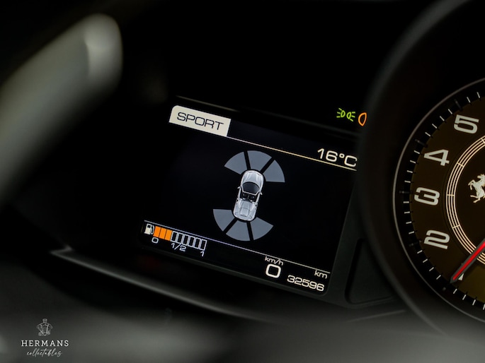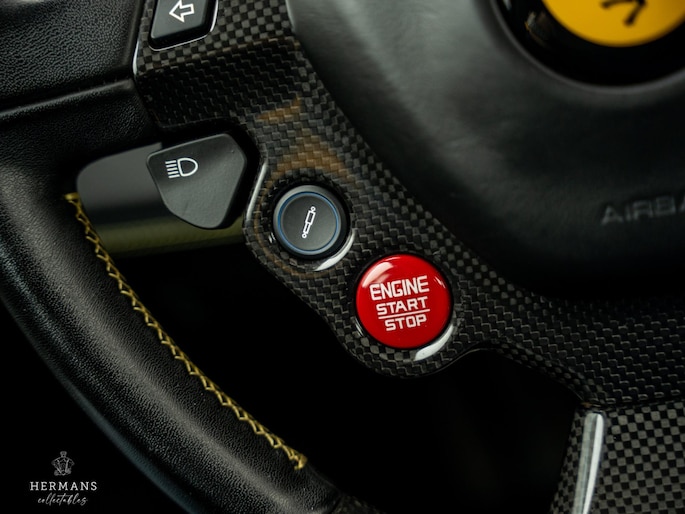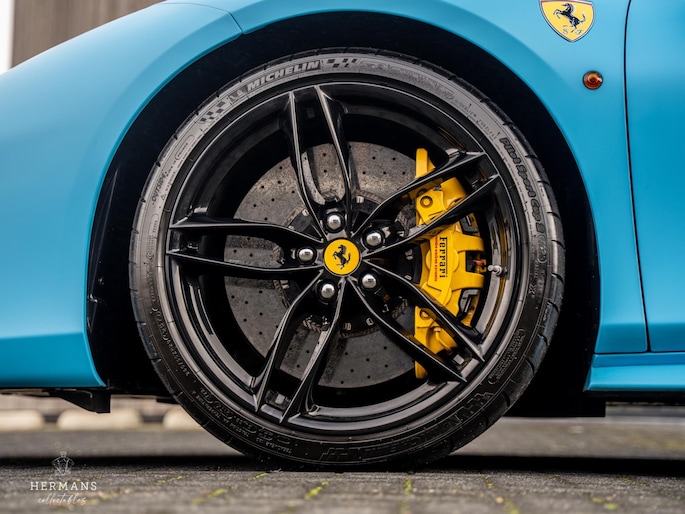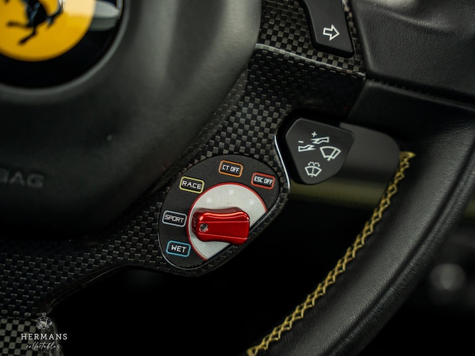 De Ferrari beschikt over de volgende extra opties: Keramische remmen, Carbon pakket exterieur, Scuderia Ferrari shields, 20'' Forged wielen ( matte Grigio Corsa ), Ferrari embleem op hoofdsteunen, Geelgekleurde veiligheidsgordels, Stiknaden in ''Giallo'', HELE system (High Emotion Low Emission), Cruise Control en parkeersensoren.
