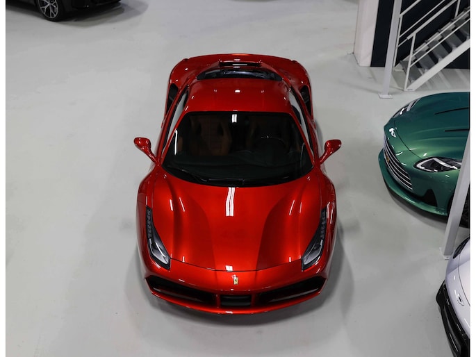 Deze Ferrari 488 GTB staat er uitzonderlijk fraai bij. De auto heeft slechts 7.455km gereden. Ondanks zijn lage kilometerstand is de auto wel uitvoerig onderhouden. De auto is afkomstig uit Singen, een plaatsje in Duitsland nabij de Bodensee en de Zwitserse grens. Geleverd door de plaatselijke Ferrari-dealer in 2018 en altijd dealer onderhouden. Het originele boekje en alle originele accessoires zijn nog aanwezig bij de auto.