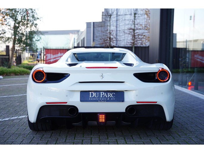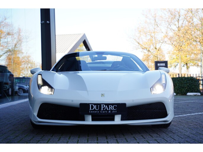 Direct uit voorraad leverbaar – deze schitterende Ferrari 488 Spider 3.9 HELE is uitgevoerd in het tijdloze Bianco Avus met een stijlvol Nero Black lederen interieur.