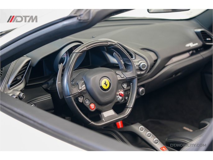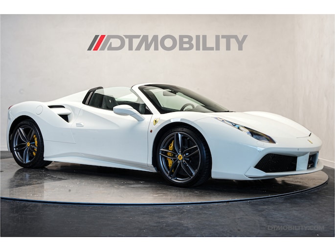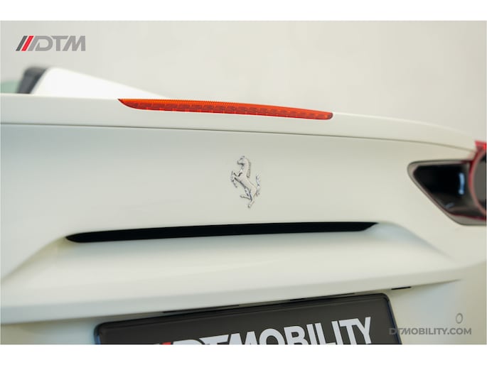 Nieuw in onze voorraad deze prachtige Ferrari 488 Spider van 2018! Van buiten uitgevoerd in Bianco Avus met 20" Forged Dark Painted wielen. Van binnen met de Daytona Racing Seats in zwart leder met wit stiksel én de 'Cavallino' in de hoofdsteun.