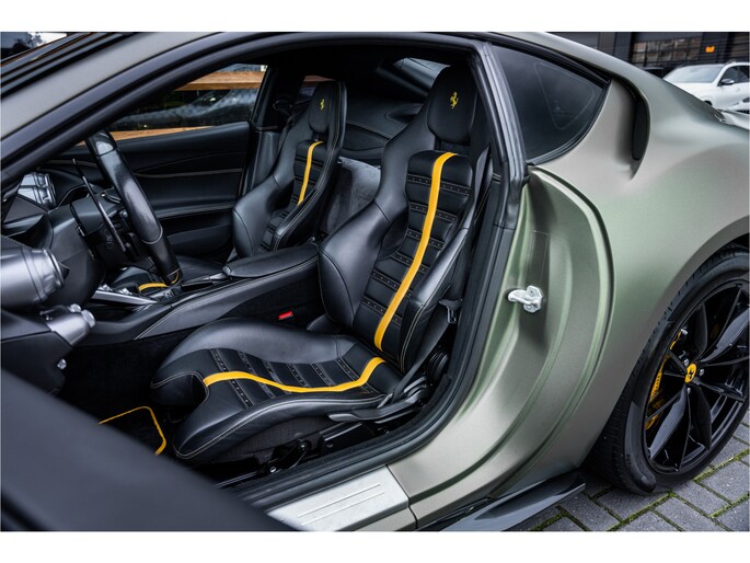 Binnenin ademt de 812 Superfast pure sportiviteit, zonder concessies aan luxe. Hoogwaardig leder, carbonaccenten en een cockpit volledig gericht op de bestuurder maken duidelijk dat dit geen gewone GT is, maar een precisie-instrument dat emotie en controle samenbrengt. De HELE-uitvoering (High Emotion Low Emission) voegt verfijnde efficiëntie toe, zonder iets af te doen aan het rauwe karakter van deze V12.