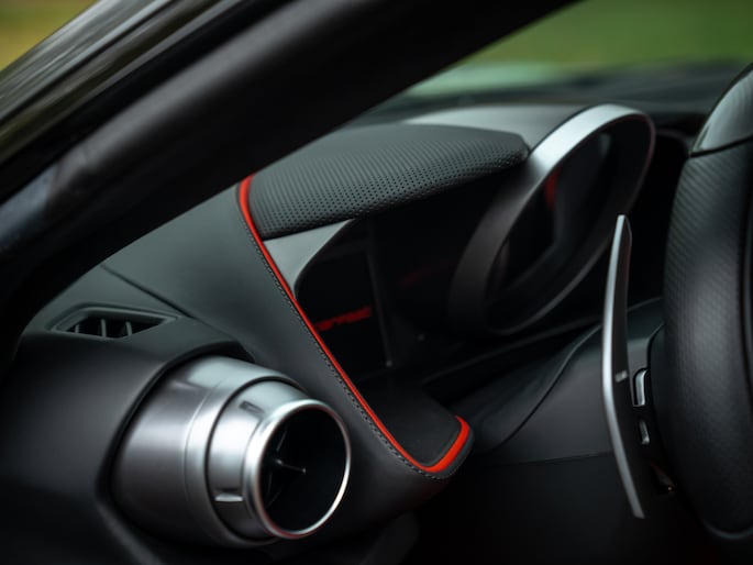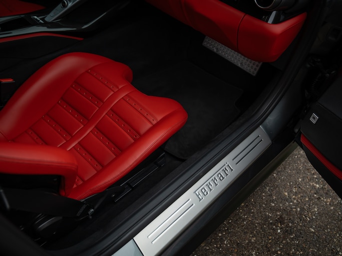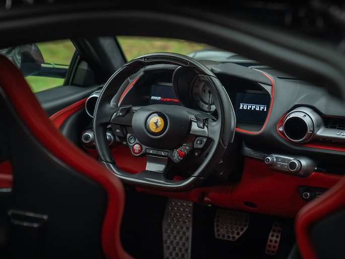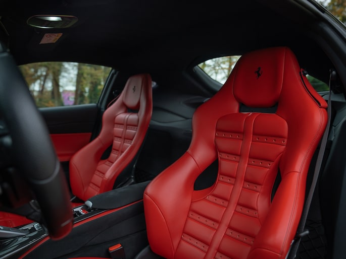 Met 800 pk onder de langgerekte motorkap valt uiteraard niet uit te sluiten dat het toch vooral het dashboard is waar u tegenaan gaat kijken. Des te fijner is dat Ferrari hier écht iets speciaals van heeft gemaakt. De bicolore cockpit bestaat immers uit een combinatie van Nero en Rosso Ferrari. Die laatste komt terug aan de onderzijde van het lederen dashboard, in biesjes aan de bovenzijde van het dashboard, op de portieren en op de Carbon Daytona sportstoelen. Elk deel dat bekleed is met Rosso Ferrari leder bevat Nero contraststiksels, tot en met de patches in de Daytona Seats, riemen op het achterdek en biesjes langs de tunnelconsole aan toe. Hoe gaaf! Oog voor detail is een understatement… Maar het wordt nog mooier, want naast heel veel leder en koolstofvezel (inclusief carbon center console + stuurwiel met LED Shift Indicator), heeft het SF-interieur grotendeels een Nero alcantara finish. Dit geldt onder andere voor de hemelbekleding, vloer + tapijten, kofferruimtebekleding, het achterdek en de middenarmsteun. Klaar om uw hoofd tegen de Nero Cavallino’s te laten rusten?