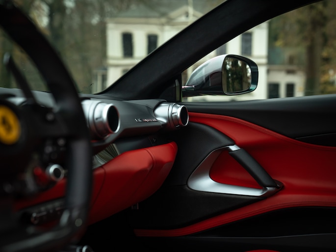 Als een supercar zo snel is als dat hij klinkt, hoort daar een passende naam bij. Ferrari bedacht zich geen moment, doopte deze grijze volbloed 812 “Superfast” en laat daarmee gelijk de ware aard achter het schitterende Silverstone kostuum zien. Ook die aanduiding zegt iets over de circuit aspiraties. Net als dat het Rosso interieur schaamteloos de ziel van deze Italiaanse schone blootlegt. Weinig SF’s waarbij zóveel extremen zó mooi samenkomen. En dan is de rest van de configuratie ook nog eens meesterlijk: Passenger Display, Suspension Lifter, adaptieve koplampen + SBL, JBL, een camera voor + achter en heel veel alcantara bepalen hoe zeldzaam (en) gewild deze atmosferische 12-cilinder Ferrari is. Hoe staat u ertegenover om 800 steigerende paarden ongedempt hun krachten te laten tonen?