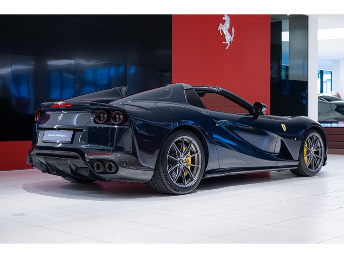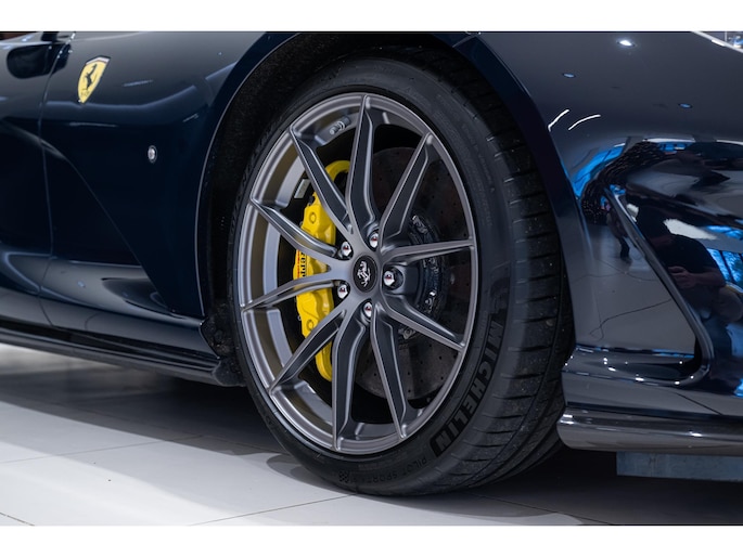 Deze 812 GTS is uitgevoerd in de stijlvolle kleur Blu Pozzi en is voorzien van een prachtig Terra Bruciata lederen interieur. Daarnaast is de auto voorzien van Alcantara interieurdelen in Nero. Aan de buitenzijde is de auto voorzien van de gewilde 20" Forged "Racing Wheels" en is dit fraaie exemplaar daarnaast met talloze Carbon Fibre opties afgewerkt. Ook in het interieur zijn meerdere Carbon Fibre opties gekozen en beschikt de auto over "Daytona Style" stoelen. Premium HiFi systeem van JBL is aanwezig op deze 812 GTS en is eenvoudig te koppelen aan Apple Carplay. Zowel voor de sportieve als comfortabele kilometers is deze 812 bij uitstek geschikt, in stedelijk gebied is het optionele liftsysteem aan de voorzijde door de eerste eigenaar besteld.