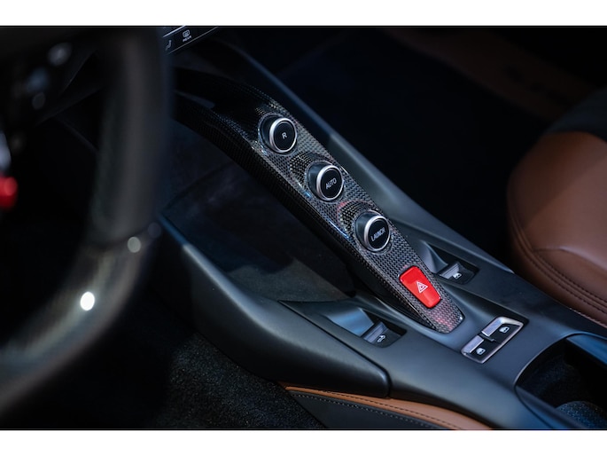 Dit rijk uitgeruste exemplaar is af fabriek van de volgende opties voorzien: "Daytona Style" stoelen, 20" Forged velgen in Grigio Corsa Matt, Adaptive Frontlight Systeem, Alcantara centrale gedeelte stoelen in Nero, Alcantara deurpanelen in Nero, Alcantara onderzijde dashboard in Nero, Apple Carplay, Carbon Fibre bestuurderszone + LEDS, Carbon Fibre centrale tunnel, Carbon Fibre dashboard inzetstukken, Carbon Fibre deurhendels, Carbon Fibre diffuser achterzijde, Carbon Fibre dorpels buitenzijde, Carbon Fibre instaplijsten, Carbon Fibre inzetstuk voorbumper, Carbon Fibre naafdoppen, Carbon Fibre onderste gedeelte achterbumper, Carbon Fibre voorspoiler, Comfortstoelen inclusief geheugen en verwarming, Dodehoek detector inclusief Cross Traffic Alert, Ferrari logo geborduurd op hoofdsteun in kleur Nero, Lederen inzetstukken interieur in Terra Bruciata, Liftsysteem aan voorzijde, Omgevingscamera, Premium Hi-Fi systeem, Scuderia Ferrari Logo's, Stiksels in Nero, Uitlaat Nero, Vloermatten met geborduurd Logo en Zwarte ringen rond luchtroosters op dashboard.