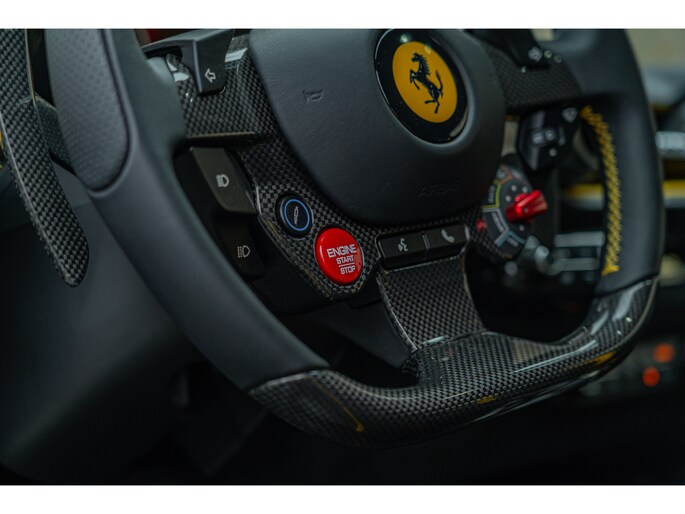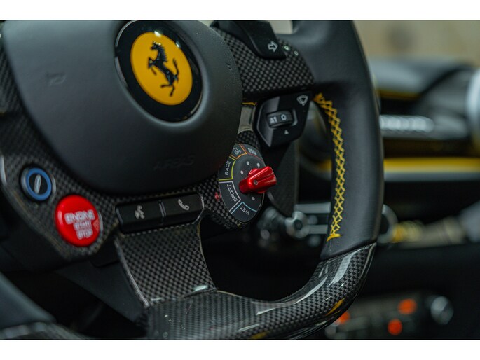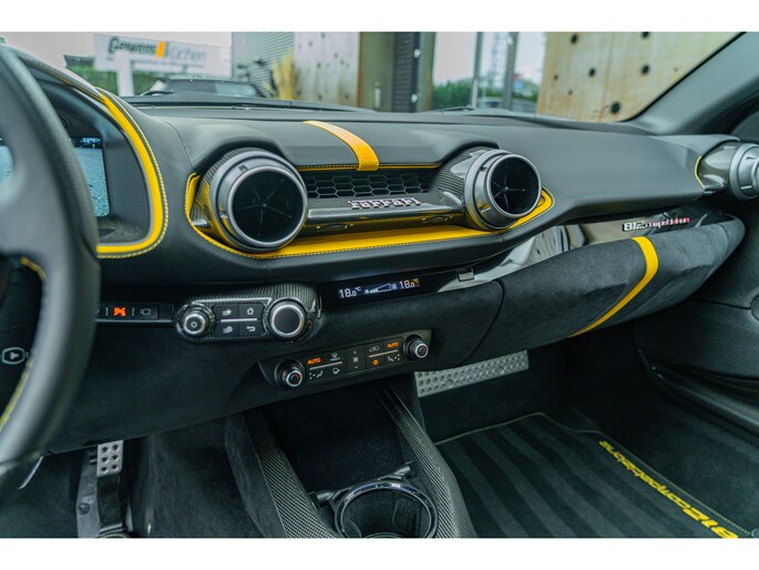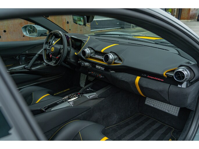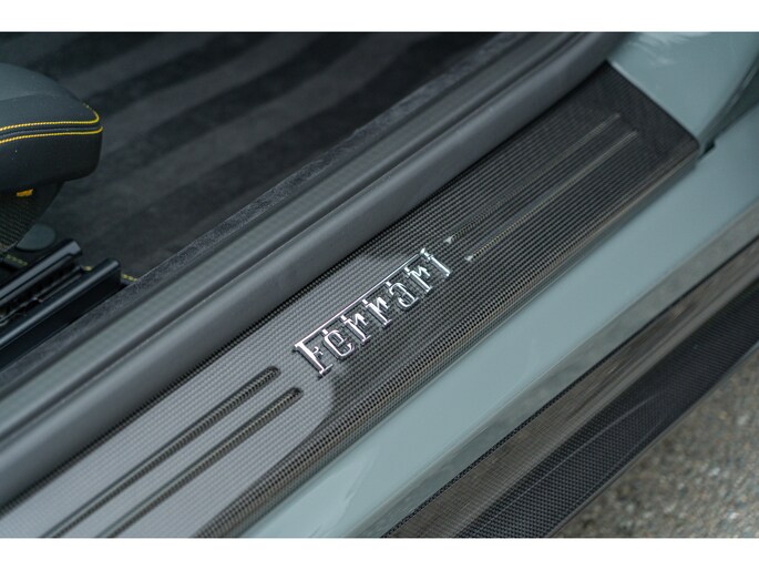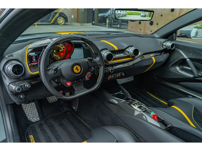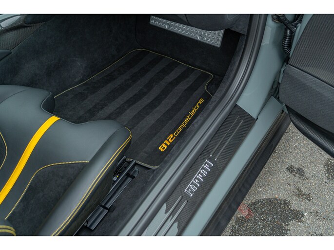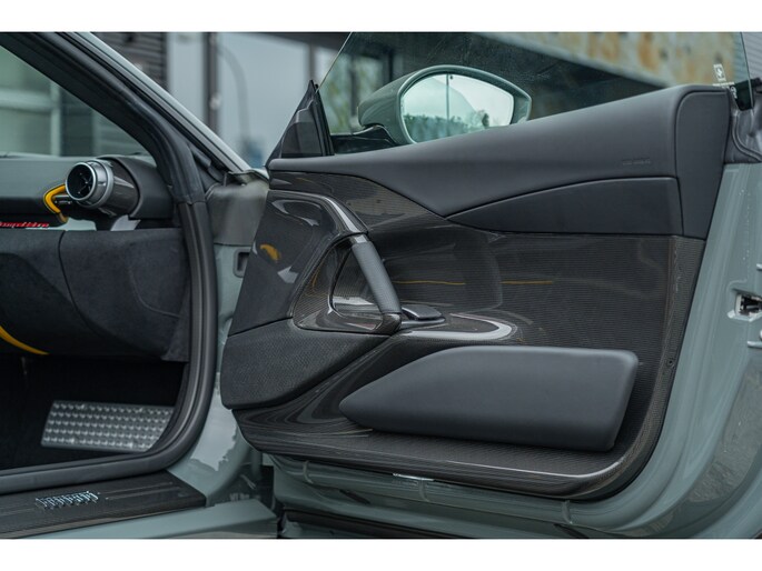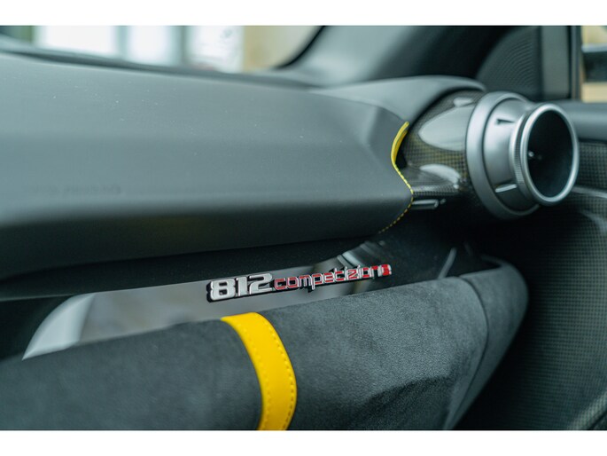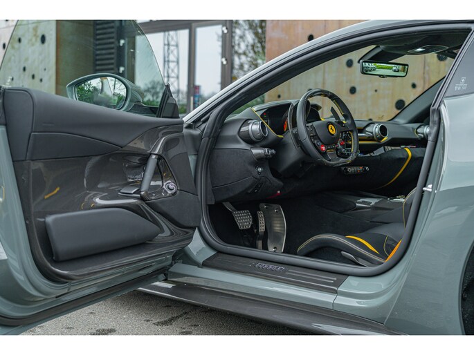 Dit exemplaar, dat oorspronkelijk in Italië werd afgeleverd, heeft slechts 1.154 kilometer gereden en verkeert nog in nieuwstaat. Het is uitgerust met vrijwel alle beschikbare koolstofvezelopties, wat zowel het prestatiegerichte karakter als de visuele impact versterkt. Een buitengewone kans om een 812 Competizione met een kilometerstand die bijna gelijk is aan die bij aflevering te verwerven, in een werkelijk unieke uitvoering – een droom voor verzamelaars en een toekomstig icoon.