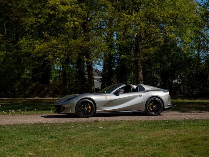 Charisma ontmoet sportiviteit. Deze fantastisch fraaie Ferrari 812 GTS is vanuit alle hoeken gezien oogverblindend mooi. En weet telkens weer te verrassen met een ander soort glans; het zeer onderscheidende, maar even elegante Aluminium Lucido metallic lakwerk speelt namelijk met de zon. De manier waarop de carrosserie belicht wordt, is bepalend voor de tint en intensiteit. Hoe dan ook is het contrast met de zwarte Racing Wheels en indrukwekkende hoeveelheid Carbon – inclusief Racing Seats, Central Bridge en Driver Zone, verbluffend te noemen. Met 8.100 km ervaring is de 800 pk sterke atmosferische Ferrari V12 amper ingereden. Tijd om in te stappen en de magie zijn werk te laten doen. De oorstrelende sound van Italiaanse power is als het perfecte charmeoffensief op weg naar snelheden tot wel 340 km/h. Vanaf de bijrijderskant is dit allemaal perfect te volgen dankzij een Passenger Display. Ook inbegrepen zijn zaken zoals Adaptieve koplampen en een Suspension Lifter. Immers, zoveel charme moet zoveel mogelijk gezien worden. Zeker ook op openbaar asfalt…