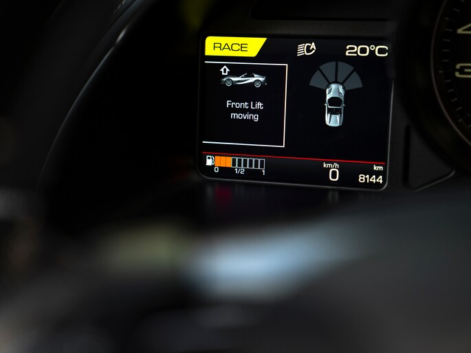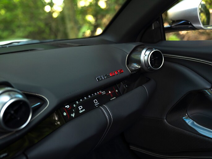 Zodra het rechterpedaal wordt gevloerd, is het ongegeneerd genieten aan boord van de 812 GTS. En hoe kan de passagier hier ongegeneerder van meegenieten dan middels een Passenger Display? Deze zorgt voor een weergave van de asfalt verpulverende performance, uitgedrukt in keiharde cijfers. Zodra de zon zakt kan het gas erop blijven staan, want de Adaptieve koplampen brengen op hun beurt het grijze lint dat u nadert, recht of kronkelig, optimaal in beeld. De Suspension Lifter komt vooral van pas tijdens een avontuurlijke rit op openbaar asfalt. Immers, een laag boven de grond hangende carrosserie is prachtig, maar niet als die in gevaar wordt gebracht door bijvoorbeeld verkeersdrempels; de nachtmerrie van iedere liefhebber!