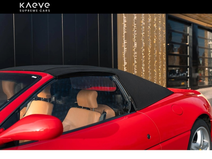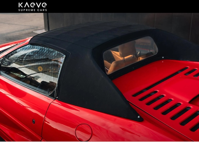 Inside, the beige leather interior remains in fine condition, showcasing the craftsmanship and tactile quality that define Ferrari’s 1990s masterpieces. The electrically operated soft top opens in seconds, offering the full open-air experience for which the Spider was designed.