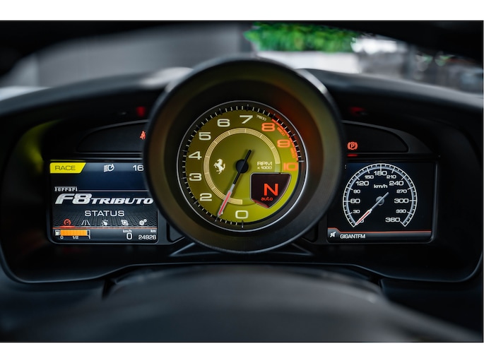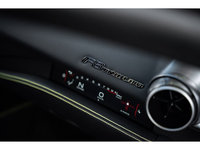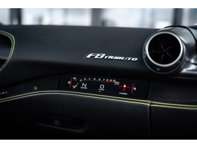 De 3.9-liter V8 biturbo, winnaar van meerdere Engine of the Year-titels, levert een adembenemende 720 pk. In combinatie met het HELE-systeem (High Emotion Low Emission) biedt de F8 Tributo niet alleen brute kracht, maar ook technische verfijning. De sprint van 0 naar 100 km/u duurt slechts 2,9 seconden, terwijl de topsnelheid de grens van 340 km/u nadert – prestaties die de grenzen van het mogelijke herdefiniëren.