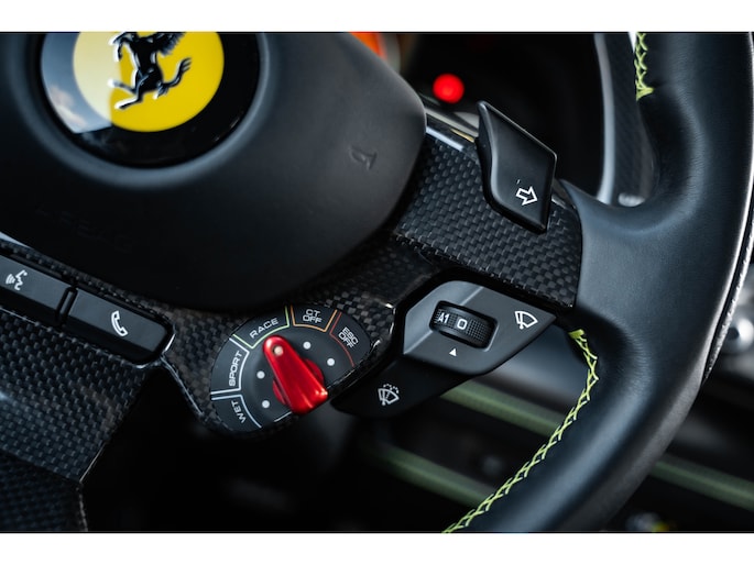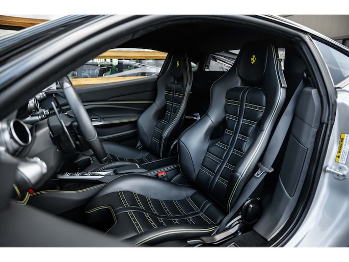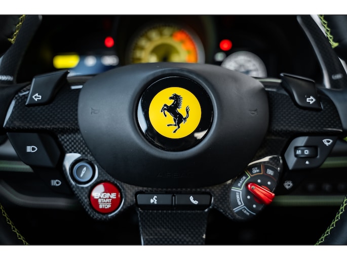 Het exterieur in Argento Nürburgring onderstreept de sculpturale elegantie van de F8 – een samenspel van aerodynamische perfectie en esthetische verfijning. Binnenin wacht een interieur dat sportieve puurheid en ambachtelijke luxe combineert; elk detail is ontworpen rond de bestuurder, elk materiaal ademt Ferrari.