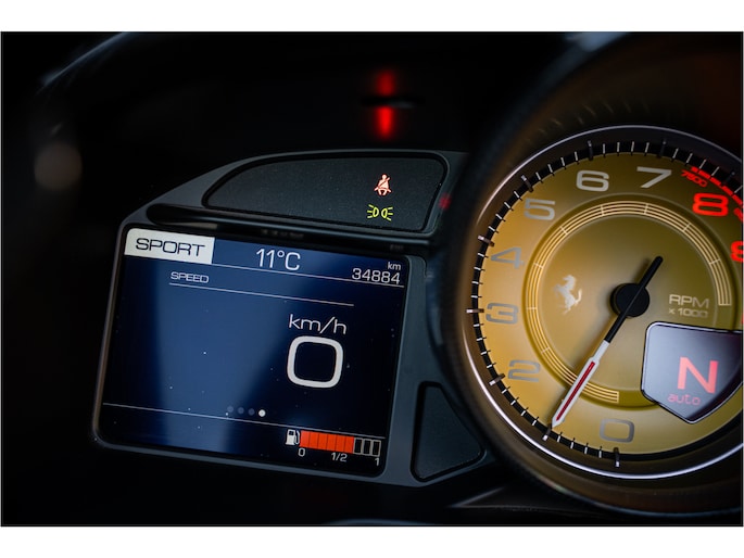 Aangedreven door de 3.9 liter V8 met dubbele turbo levert de Portofino 600 pk. Het resultaat is een sprint van 0 naar 100 km/u in slechts 3,5 seconden en een topsnelheid boven de 320 km/u. Dankzij het innovatieve HELE-systeem wordt dit alles samengebracht met verfijning en efficiëntie, zonder in te leveren op de kenmerkende Ferrari-beleving. Met het elektrisch neerklapbare hardtop-dak verandert de Portofino in enkele seconden van een elegante coupé in een open sportwagen, waardoor elke rit een nieuwe dimensie krijgt.