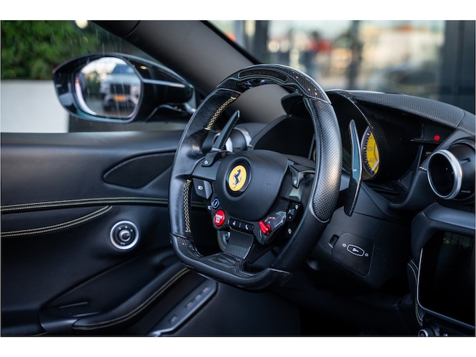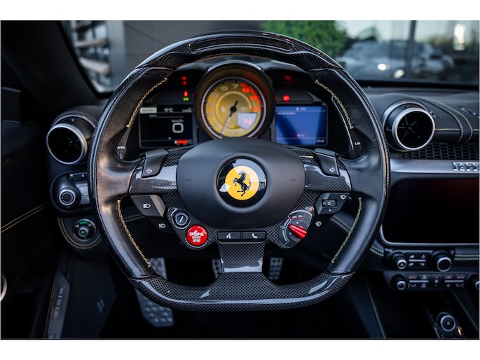 Het exterieur in Nero Daytona benadrukt de vloeiende lijnen en de sportieve proporties van de Portofino, een design dat kracht en stijl perfect in balans brengt. Binnenin biedt de cockpit een samenspel van luxe materialen, geavanceerde technologie en Italiaans vakmanschap, volledig afgestemd op comfort én rijplezier.
