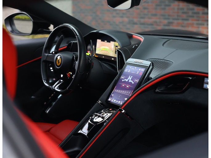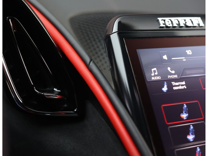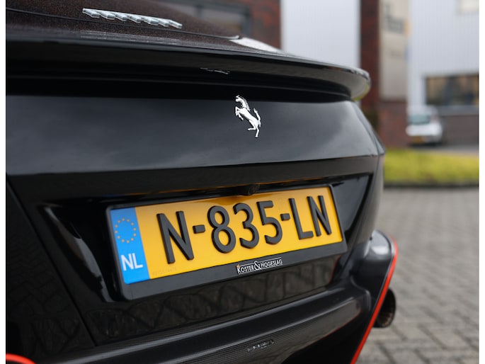 Dit zou bijna saai kunnen klinken, maar niets is minder waar. Het exemplaar dat wij u mogen aanbieden, is uitgevoerd met details die hem nét dat extra rauwe randje geven. Het rode interieur ademt onmiskenbaar Ferrari-DNA. En waar het wellicht gedurfd klinkt, zijn de rode exterieuraccenten juist van een sublieme elegantie. De striping op de carbon onderdelen maakt het geheel volledig af.