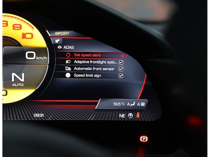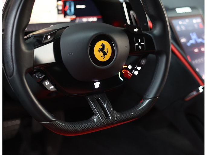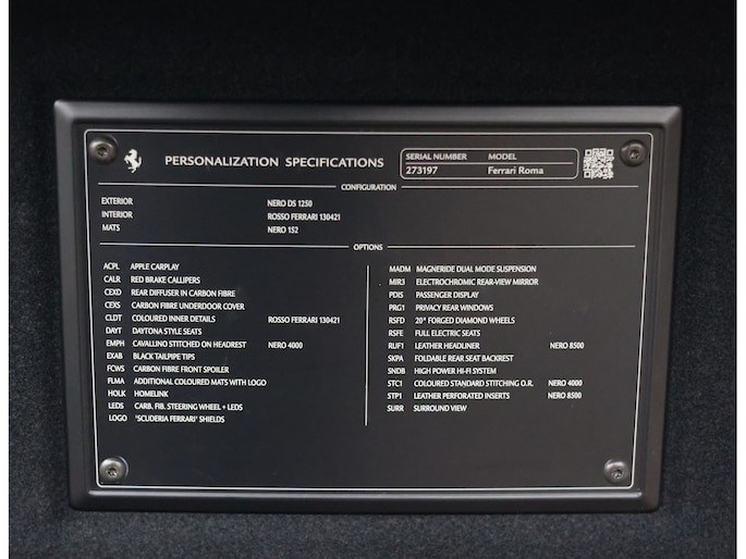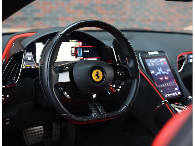 Daarnaast is deze Roma bijzonder rijk uitgerust. Naast uitgebreide Carbon Fibre details beschikt de auto onder meer over Surround View Camera, het JBL High-Power audiosysteem, Magneride Dual Mode Suspension en het Passenger Display.