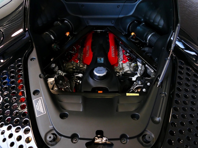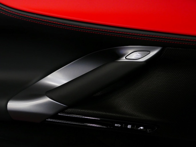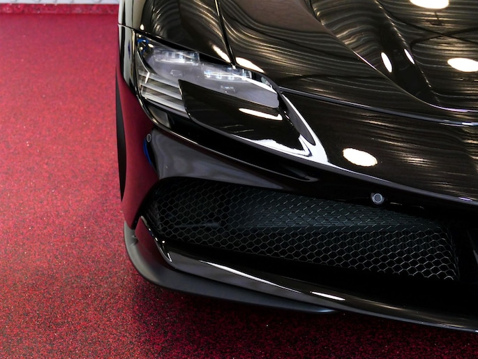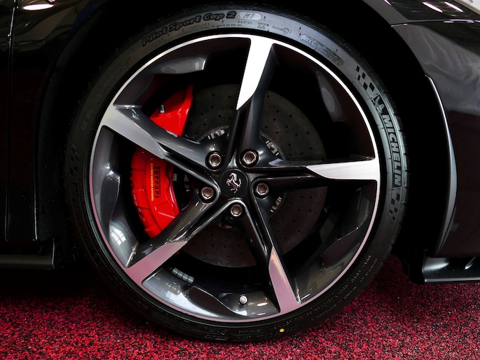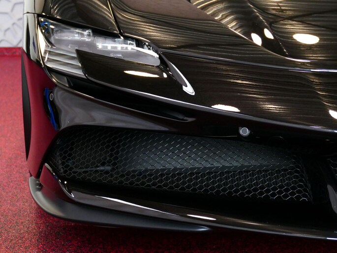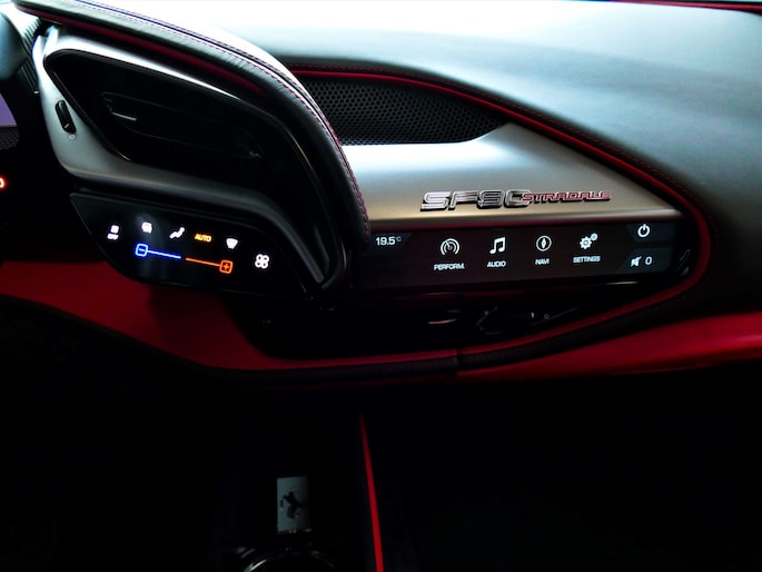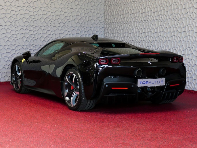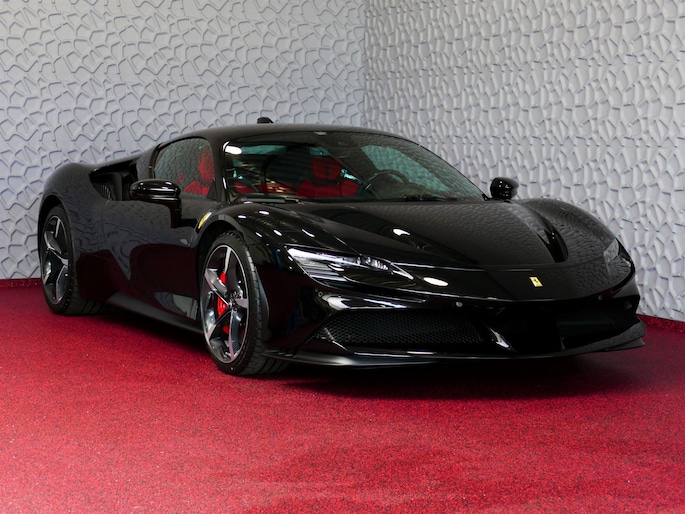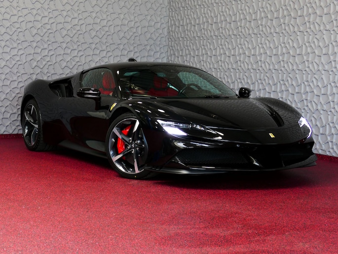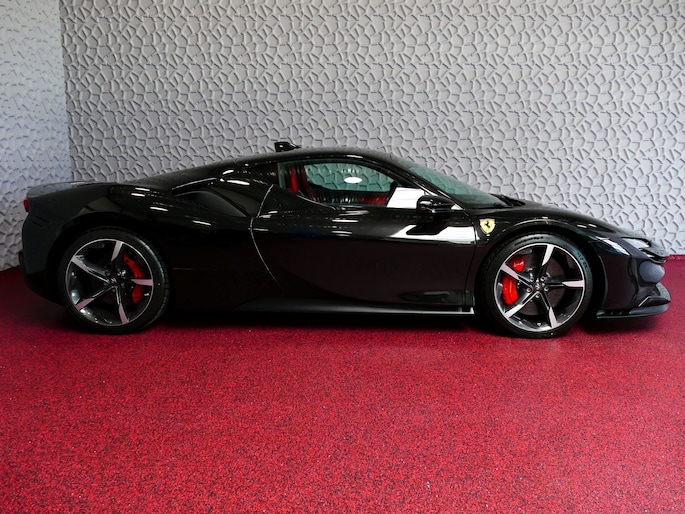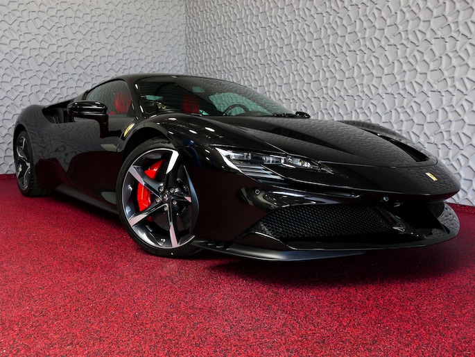 Deze SF90 is uitgevoerd in de elegante kleur Nero Daytona met een adembenemend Rosso Ferrari interieur. Elk detail ademt exclusiviteit en vakmanschap: