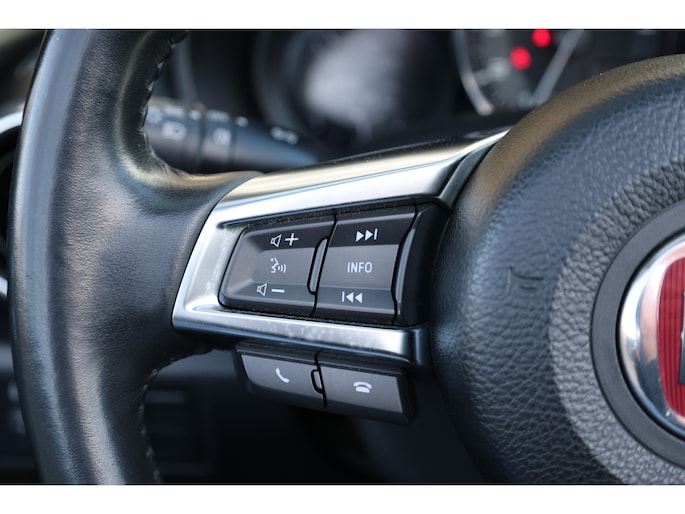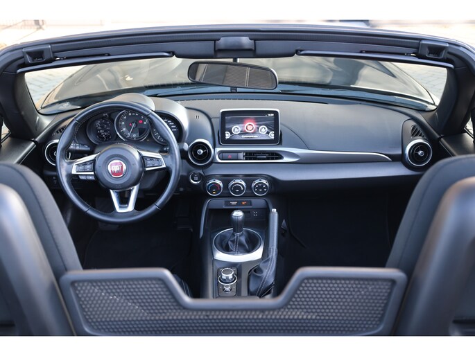 Het navigatiesysteem loodst u snel naar uw reisdoel. Deze Fiat 124 Spider is voorzien van sensoren aan de achterzijde om een achteropkomend verkeer waarschuwing te geven als de afstand tussen u en een achterligger te klein is. Laat de kids maar gamen en appen: de ingebouwde WIFI-hotspot kan het makkelijk aan. Switchen van radiozender of het geluid dempen - het gaat gemakkelijk en veilig dankzij de audiobediening op het stuur. Voor een storingvrije radio-ontvangst zorgt de ingebouwde DAB-ontvanger. Extra opties op deze auto zijn: WIFI-hotspot, cruise control, airconditioning, lederen stuur, centrale deurvergrendeling met afstandsbediening en lederen versnellingspook.