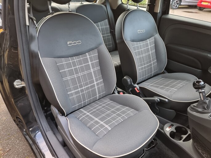"U ziet het al aan de buitenkant en u voelt het zodra u de krachtige motor start, deze sportieve Fiat 500 is gemaakt om prestaties te leveren. Onder de motorkap van dit voertuig bevindt zich een zuinige benzinemotor met twee cilinders. Natuurlijk zijn de sportstoelen super functioneel als het rechterpedaal ingetrapt wordt. Maar ook voor het uiterlijk doen ze veel! Verder is de Fiat uitgerust met: 15 inch lichtmetalen velgen, LED-dagrijverlichting en in delen neerklapbare achterbank.